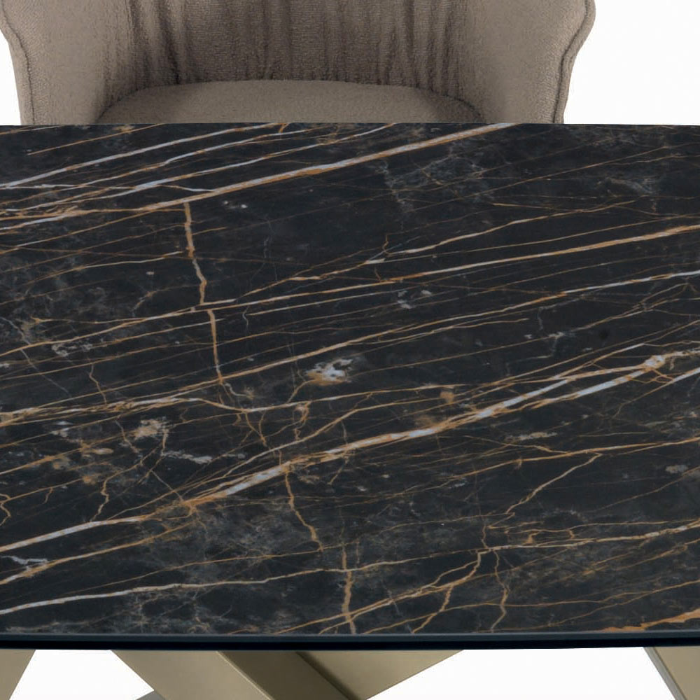 sipër desir noir me shkëlqim (xhami 10 mm i trashë + qeramike 5 mm) dhe bazë shampanje