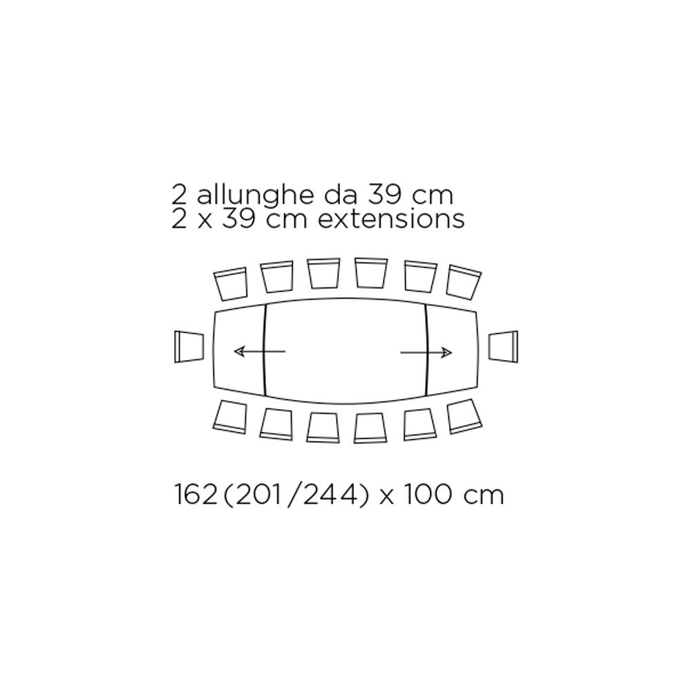 Tavolinë e zgjatshme e dhomës së ndenjes në formë fuçie me zgjatime të integruara,majë qeramike, buzë e prerë 45° , bazë çeliku me këmbë të rregullueshme. Stili dhe eleganca moderne takohen në këtë produkt i cili plotëson dhe e bën unik çdo ambient shtëpiak dhe kontraktor. Falë përfundimeve dhe materialeve të zgjedhura, e gjithë cilësia e Made in Italy është e garantuar dhe një produkt jo vetëm i bukur, por edhe funksional dhe praktik.