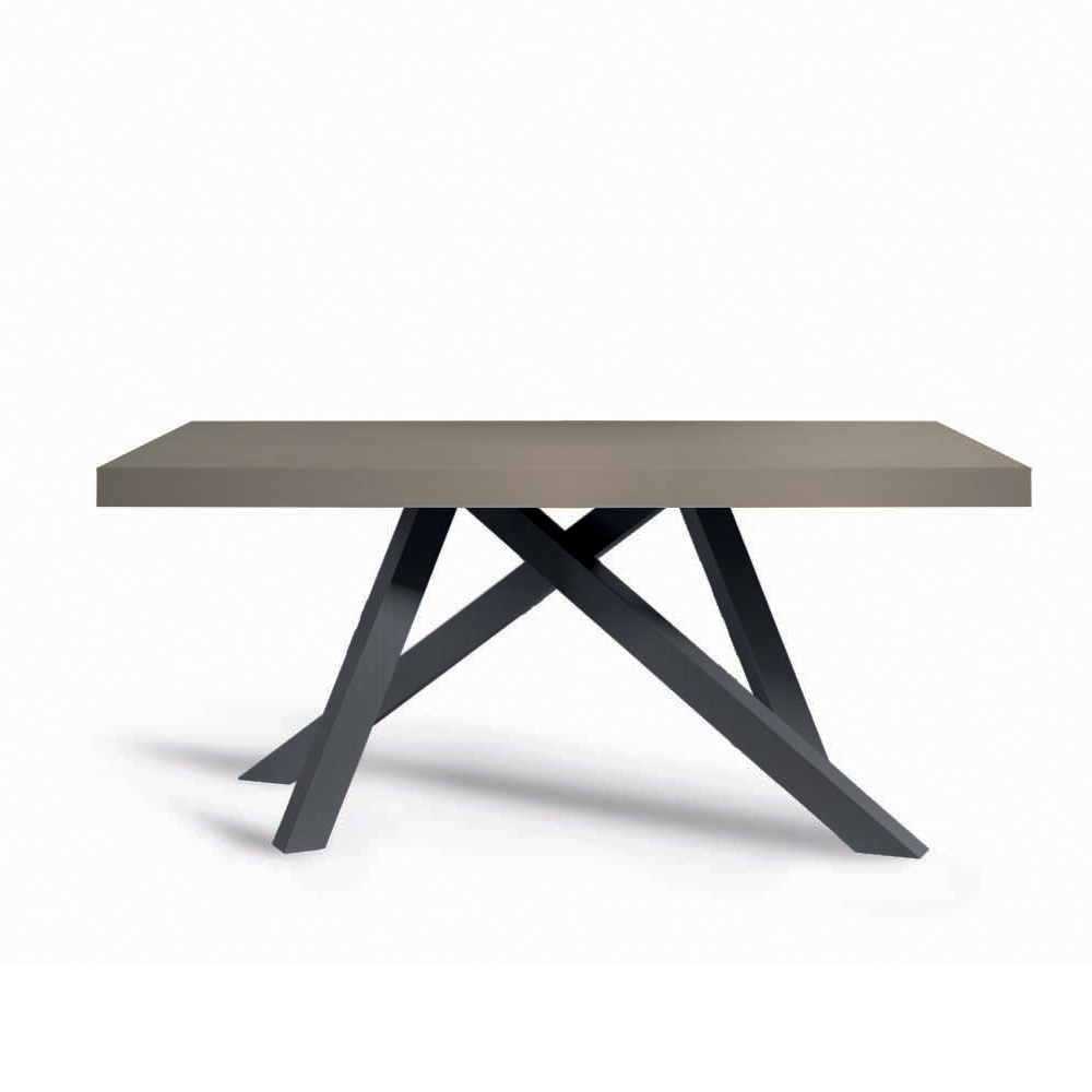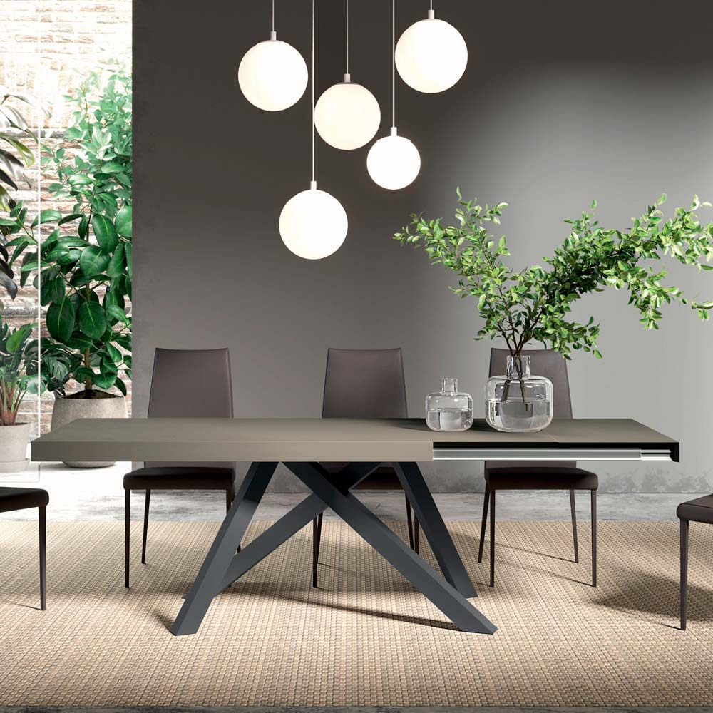 Tavolinë e zgjerueshme e dhomës së ndenjes me hapje anësore të sinkronizuara (zgjatje të brendshme),sipër melamine me llaç gri pëllumbash, buzë të palosshme , bazë çeliku e lakuar me grafit me këmbë të rregullueshme. Stili dhe eleganca moderne takohen në këtë produkt i cili plotëson dhe e bën unik çdo ambient shtëpiak dhe kontraktor. Falë përfundimeve dhe materialeve të zgjedhura, e gjithë cilësia e Made in Italy është e garantuar dhe një produkt jo vetëm i bukur, por edhe funksional dhe praktik.