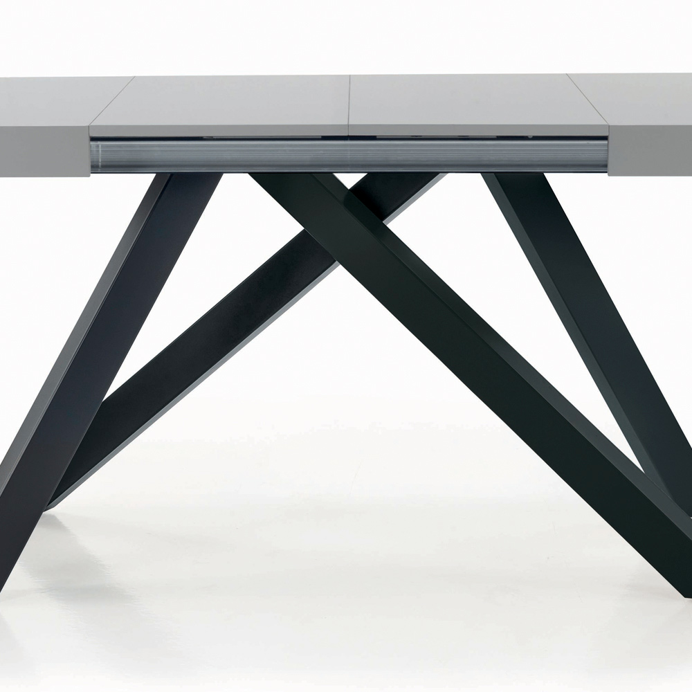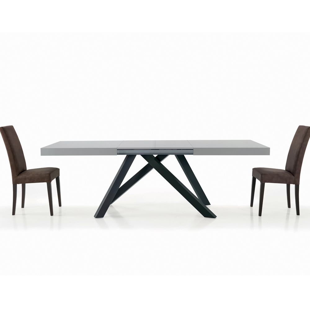 Tavolinë e zgjerueshme e dhomës së ndenjes me hapje qendrore të sinkronizuar (zgjatje të brendshme), majë me laminat të bardhë mat, buzë të palosshme , bazë çeliku e lakuar me grafit me këmbë të rregullueshme. Stili dhe eleganca moderne takohen në këtë produkt i cili plotëson dhe e bën unik çdo ambient shtëpiak dhe kontraktor. Falë përfundimeve dhe materialeve të zgjedhura, e gjithë cilësia e Made in Italy është e garantuar dhe një produkt jo vetëm i bukur, por edhe funksional dhe praktik.