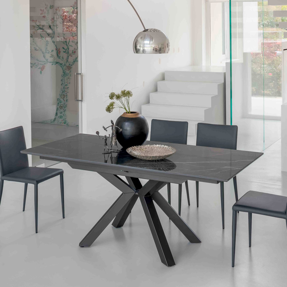Bukuria e saj e vërtetë qëndron në fleksibilitetin e saj. Mbyllur, është një tryezë e matur dhe me klas ; i hapur, ai shndërrohet në një sipërfaqe pritjeje bujare . Ideale për darka me miqtë, seancat e punës kolektive ose si një hapësirë e gjithanshme për familjen tuaj, ai përshtatet me nevojat e momentit me një tranzicion të rrjedhshëm dhe pa mundim.
