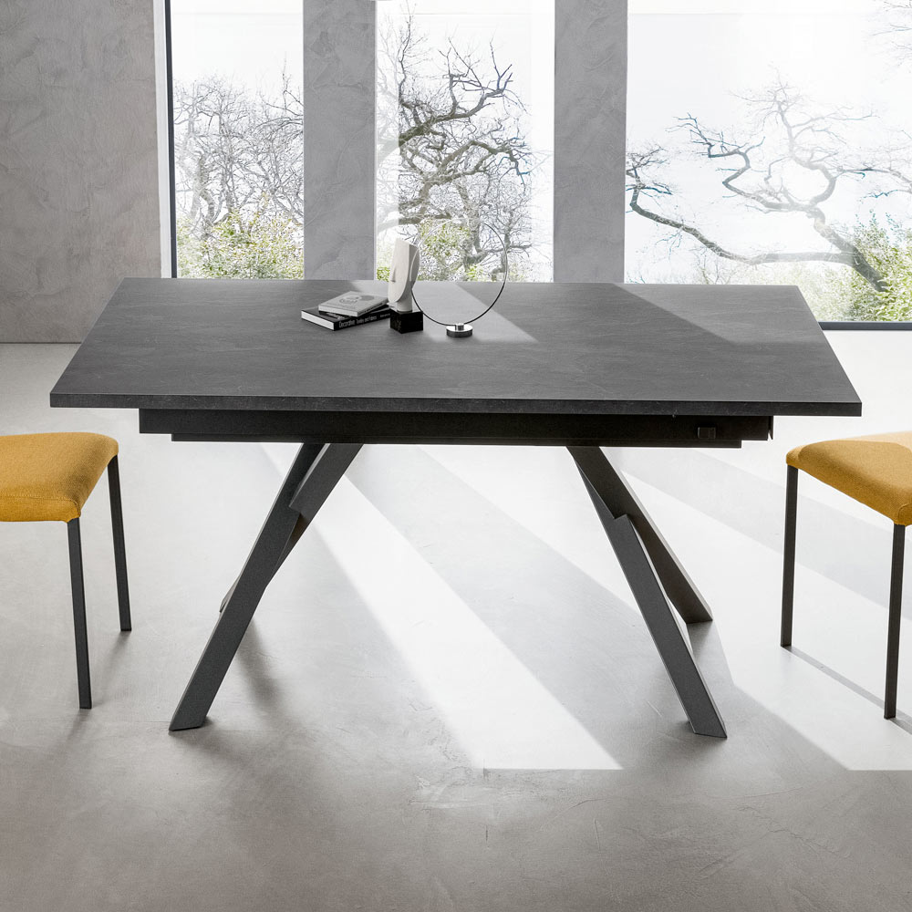 E fortë, elegante dhe tepër praktike: kjo tavolinë e zgjerueshme në HPL dhe metal është projektuar për ata që kërkojnë funksionalitet dhe stil bashkëkohor në një mobilje të vetme.