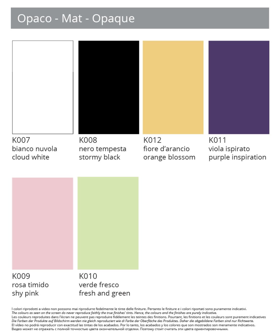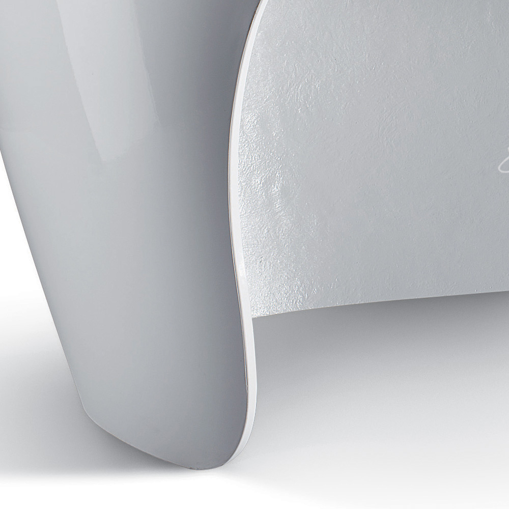 Kjo tavolinë përbëhet nga një guaskë e formuar vetë-mbështetëse në poliuretani me densitet të lartë, e disponueshme në tre variante të ndryshme: Glassy, Matt e stampuar ose në versionin metalik. Pasi të keni zgjedhur përfundimin e tavolinës, mund të zgjidhni edhe variantin e ngjyrës që ju përshtatet më së miri.