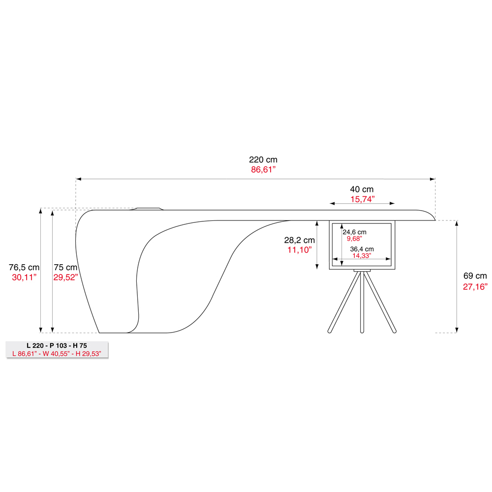 Masat L. 220 cm x D. 103 cm x Lartë. 75 cm