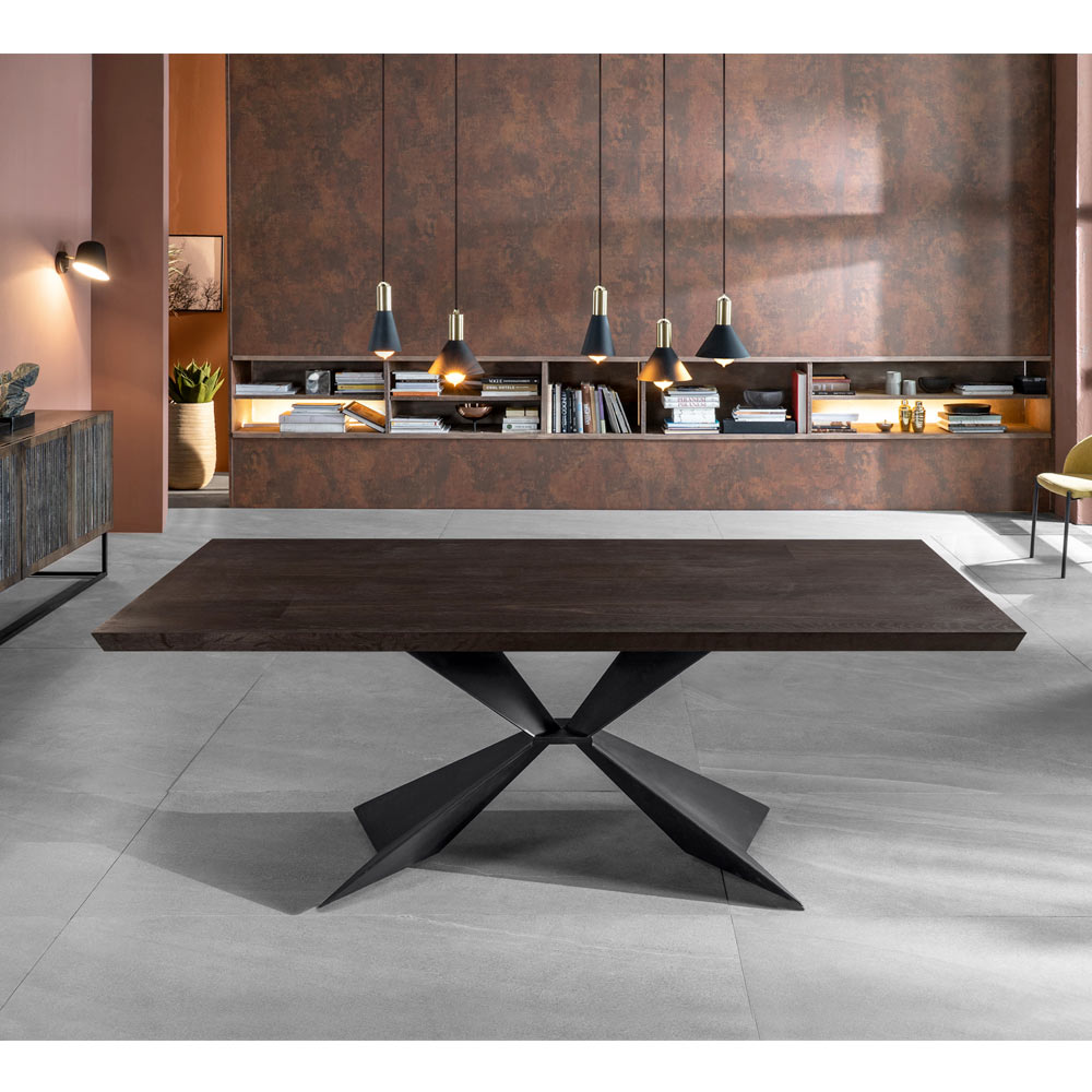 Kjo tavolinë, falë formës së këmbëve të saj, i jep dhomës një prekje moderne dhe elegante që përputhet në mënyrë të përkryer me referencën klasike të drurit, duke kënaqur kështu nevojat e ndryshme të stilit dhe dizajnit. Është një tavolinë që bëhet protagoniste e ambientit të ndenjes, qoftë kuzhinë apo sallon, duke i dhuruar klientit momente komoditeti unike dhe të paharrueshme.