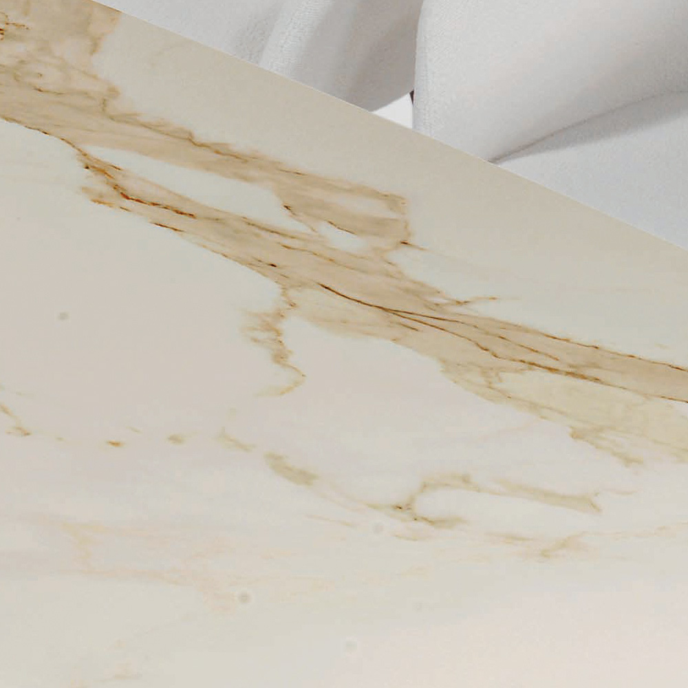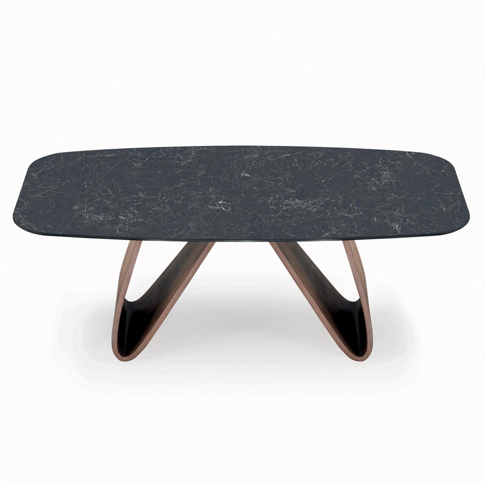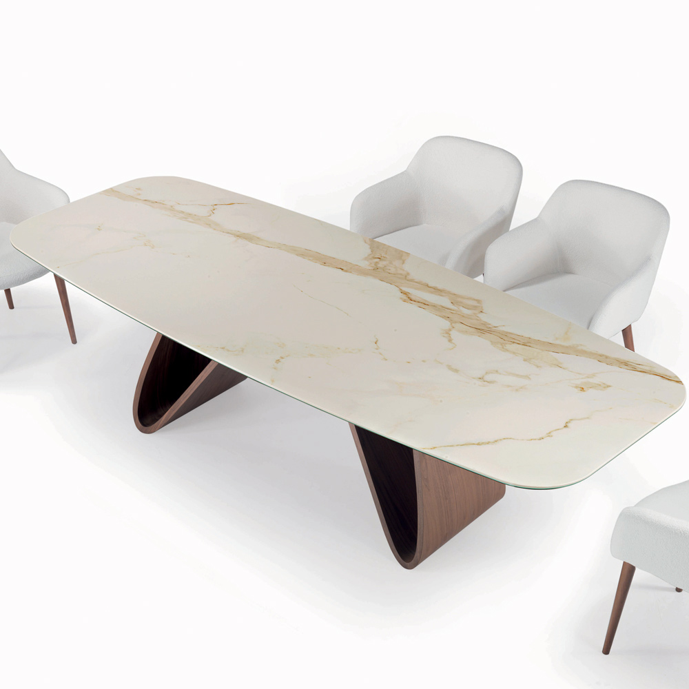 Tavolinë fikse e dhomës së ndenjes në formë fuçie me majë qeramike , buzë të pjerrëta 45° , bazë prej druri të rimeso Canaletto dhe këmbë të rregullueshme. Falë formës së bazës dhe veshjeve të sipërme të disponueshme, tavolina është në gjendje t'i japë një prekje lëvizjeje dhe elegance çdo ambienti të përditshëm dhe kontraktues. Materialet garantojnë funksionalitet dhe prakticitet për të patur një produkt jo vetëm shumë të bukur nga ana vizuale por edhe i përdorshëm në çdo rast.