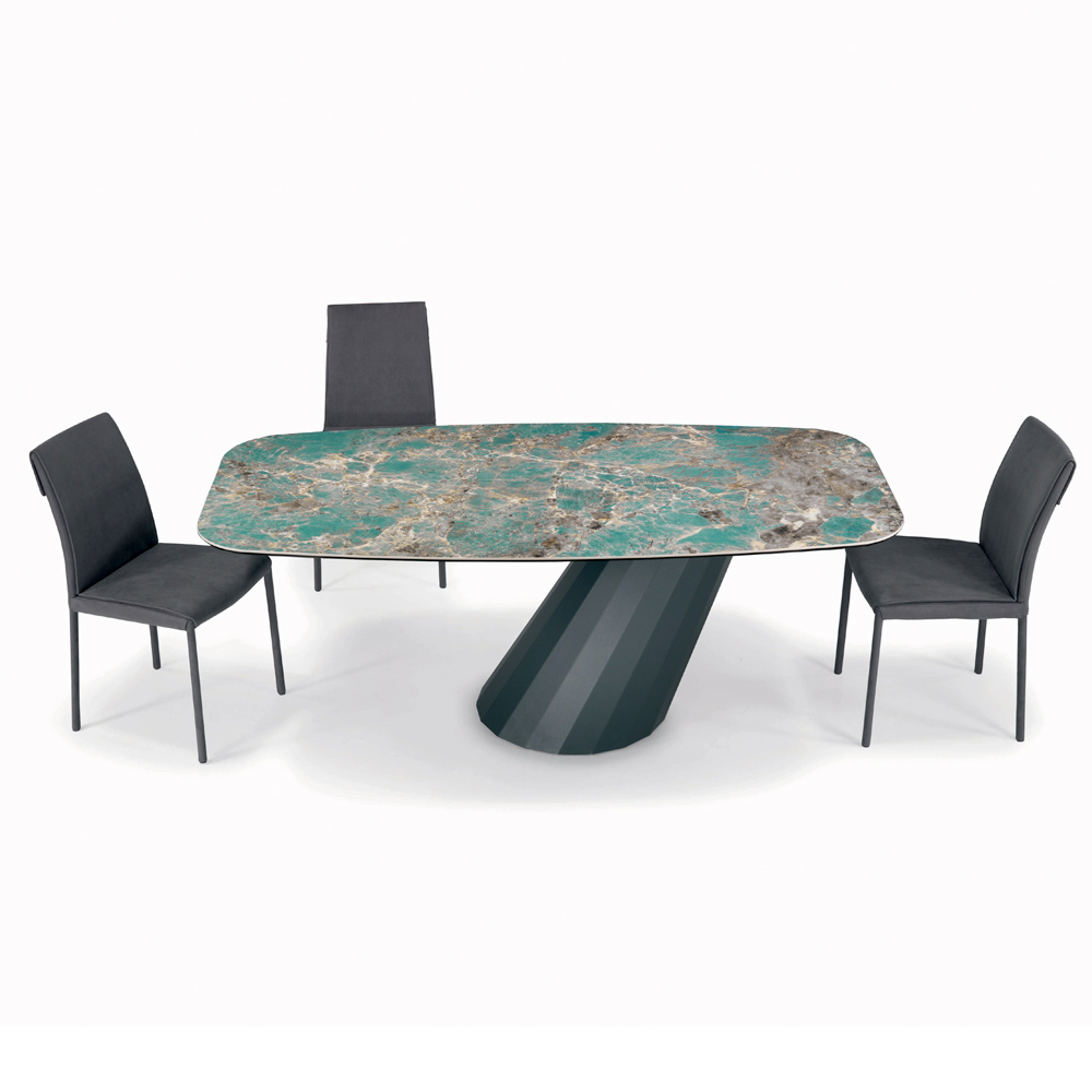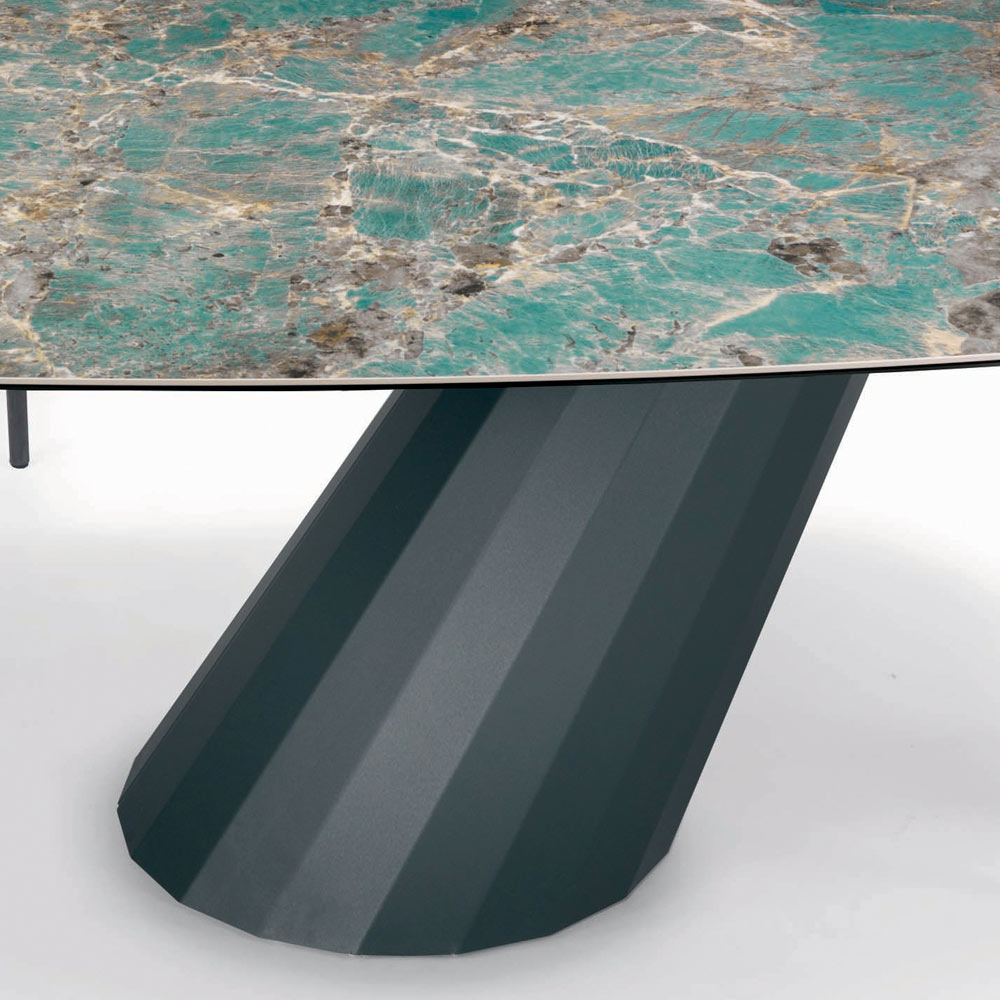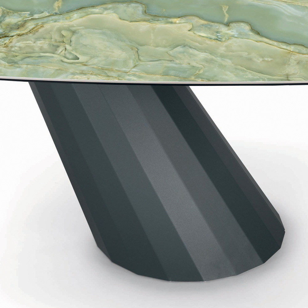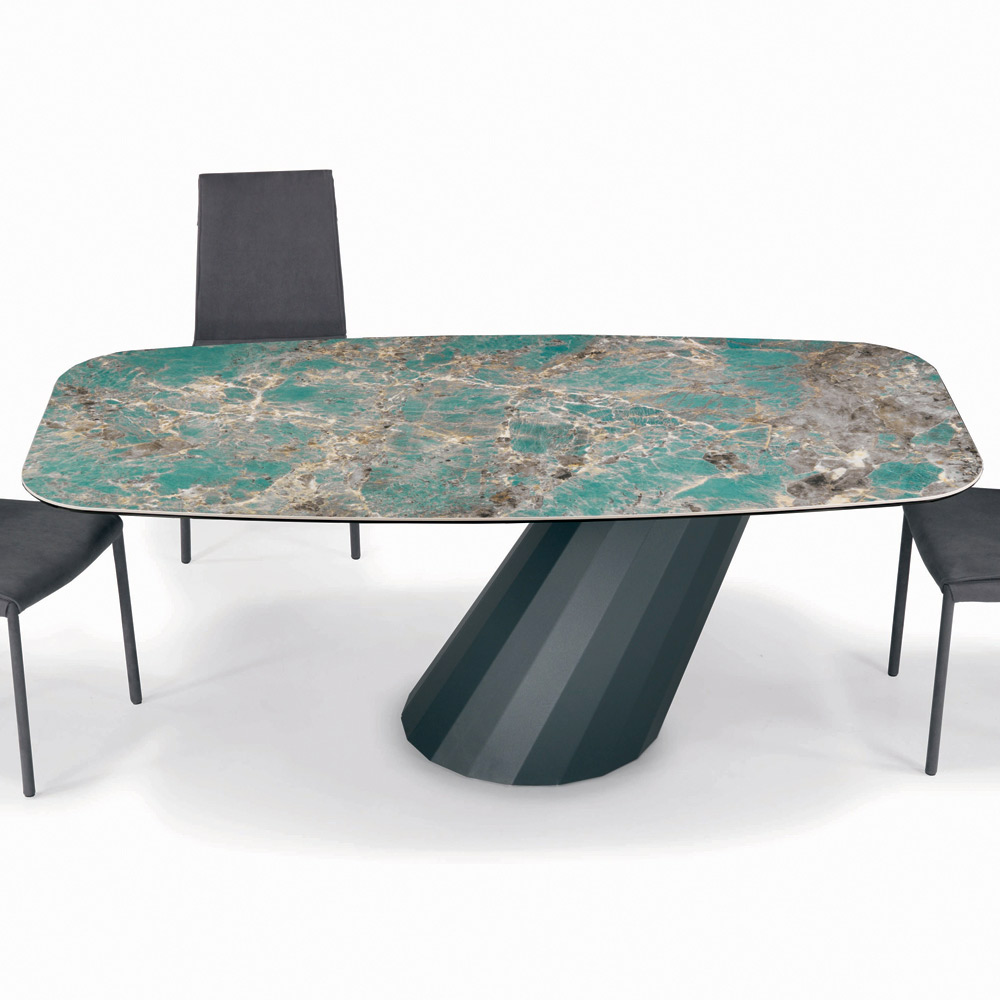 Tavolinë fikse e dhomës së ndenjes në formë fuçie me majë qeramike , buzë të pjerrëta 45° , bazë çeliku të lakuar me grafit dhe këmbë të rregullueshme Prodhuar në Itali. Ky produkt çliron një elegancë të madhe dhe bëhet protagonist i çdo ambienti . Përsosja e formës së bazës së kombinuar me përfundimin e pjesës së sipërme që zgjidhni krijon një tavolinë unike, me një ndikim të madh vizual që mobilon me shije dhe rafinim ambientet e përditshme dhe të kontraktuara. Zgjedhja e materialeve me cilësi të lartë dhe vëmendja në krijimin e çdo detaji krijon një produkt me cilësi të shkëlqyer Made in Italy.