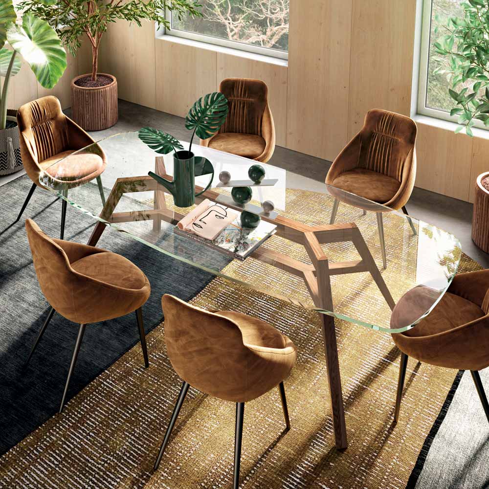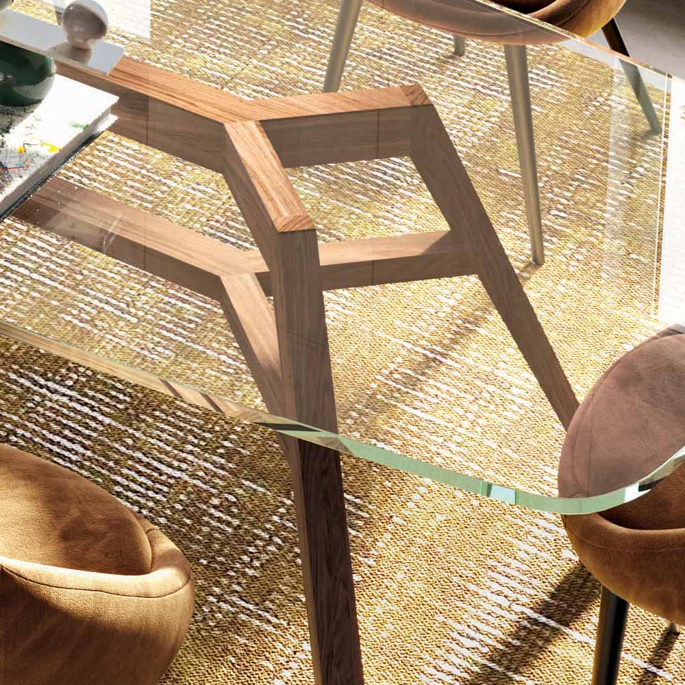 Tavolinë fikse e dhomës së ndenjes në formë fuçie me majë xhami , buzë të pjerrët 30° , bazë prej druri hiri me finiturë arre kanali . Ky produkt me një stil modern ka objektivin kryesor që të mund të përdoret çdo ditë pa sakrifikuar dizajnin. Zinxhiri i produkteve, nga konceptimi në prodhim, deri në kontrollin e cilësisë, kryhet tërësisht në Itali , për të garantuar dhe ruajtur karakteristikën tipike të "know-how" italian dhe rëndësinë e tipike Made in Italy.