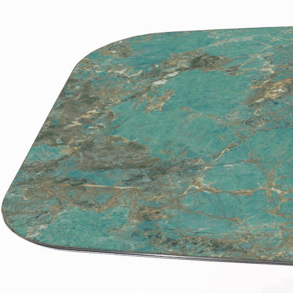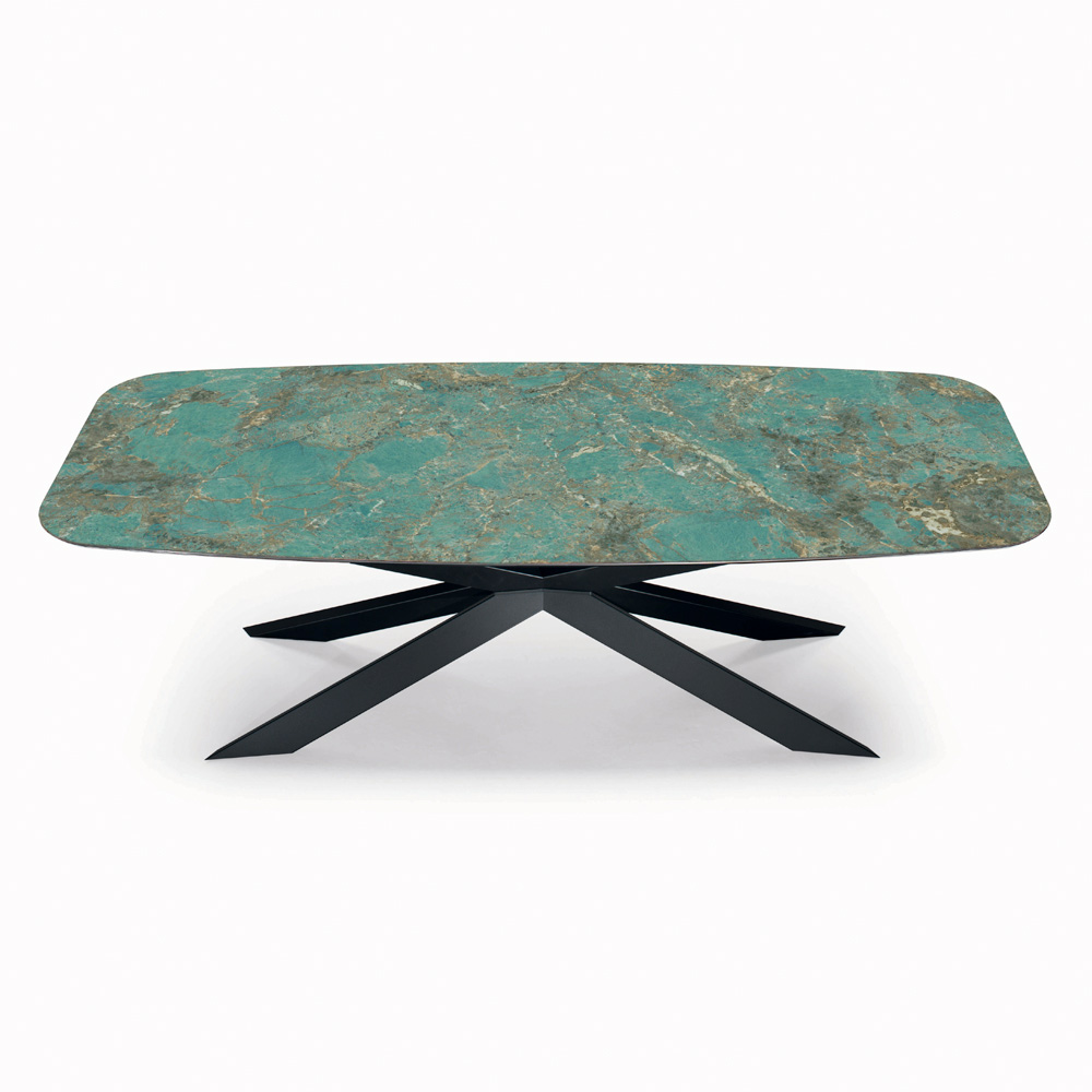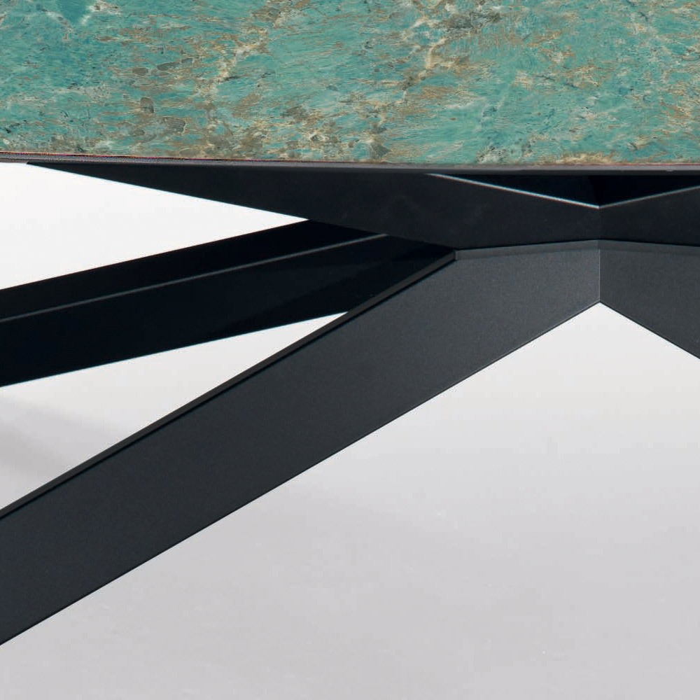 Tavolinë e fiksuar e dhomës së ndenjes në formë fuçie me majë qeramike të lëmuar nga amazoniti, skaj i pjerrët 45° , bazë çeliku e zezë e llakuar me këmbë të rregullueshme. E gjithë mjeshtëria dhe cilësia e artizanëve italianë përmbahen në këtë produkt, ku janë zgjedhur materialet më të mira dhe vëmendje maksimale i është kushtuar çdo detaji . Ne donim të kombinonim stilin modern me funksionalitetin për të krijuar një tryezë jo vetëm të bukur për t'u parë, por edhe të përdorshme në raste të ndryshme.