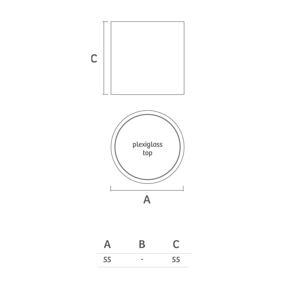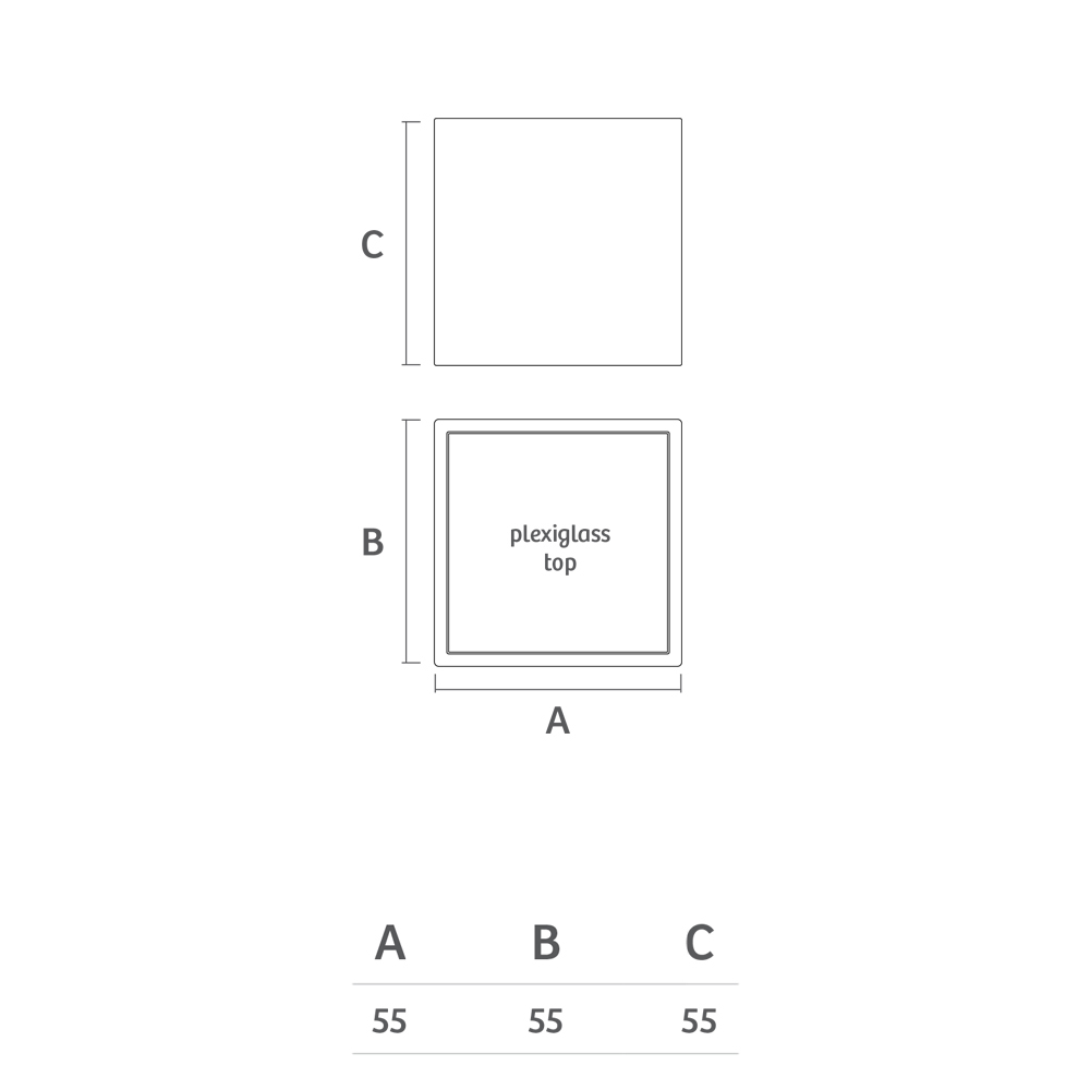 Madhësitë e disponueshme:- L 55 x D 55 x H 55 cm - kub;