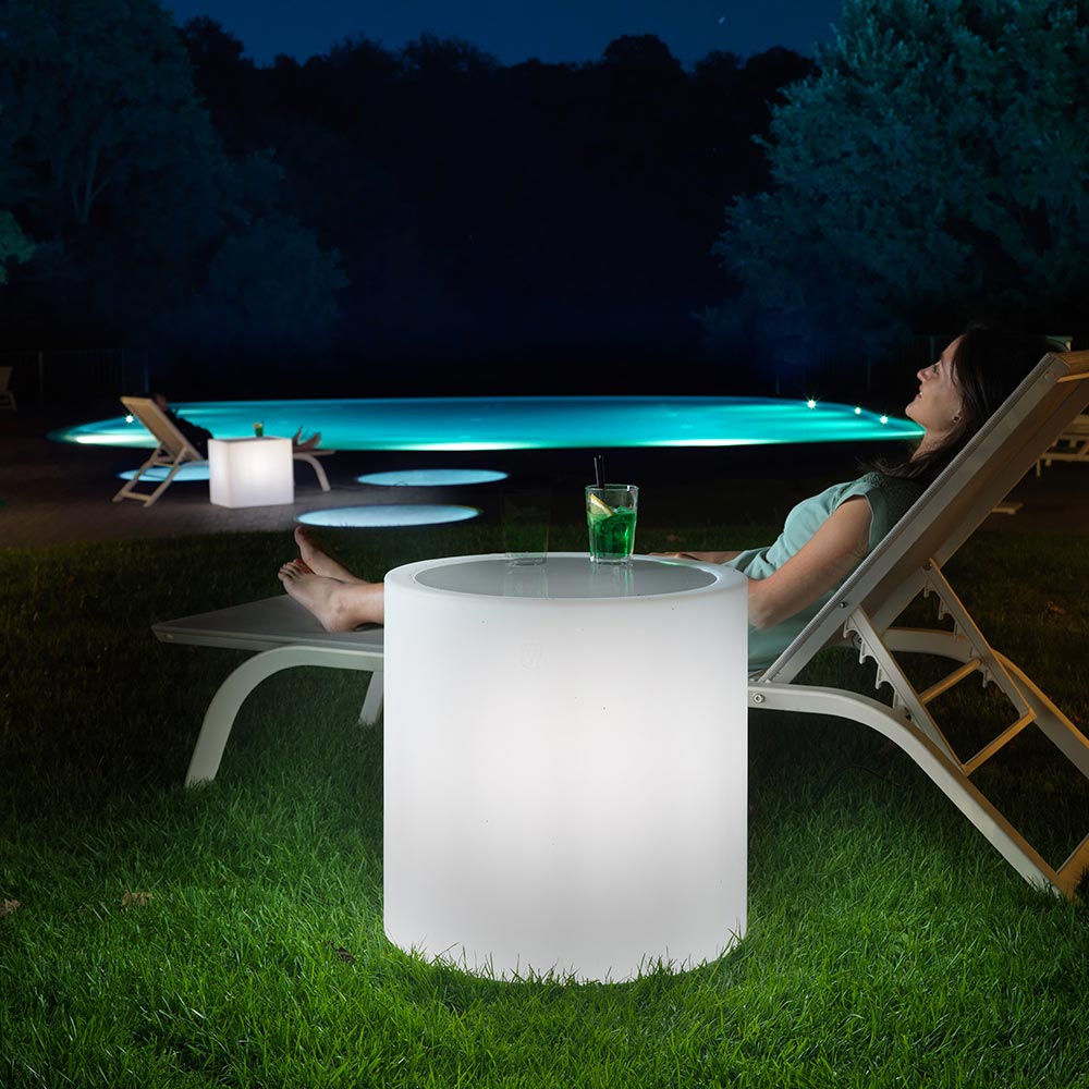 Drita e integruar LED dhe pjesa e sipërme e pleksiglas e transformojnë këtë tavolinë kafeje në një aksesor mobilimi me dizajn bashkëkohor dhe rrit