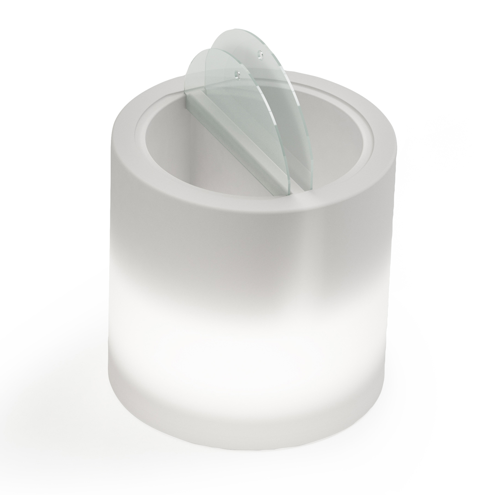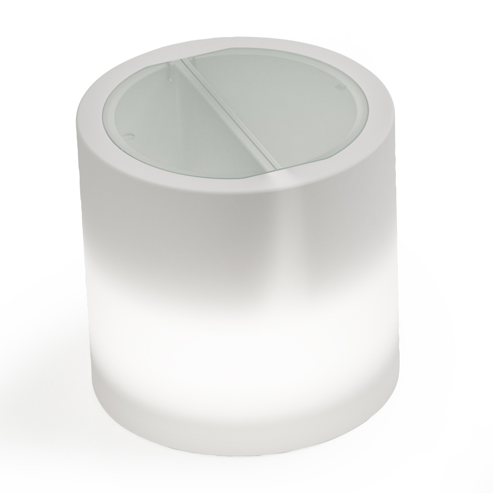 Kjo tavolinë kopshti tërësisht e punuar dhe prodhuar në Itali në polietileni me dritë të bardhë është e pajisur me një enë të ndarë në dy ndarje me kapak pleksiglas . Këto dy ndarje janë me madhësi paksa të ndryshme, në mënyrë që të mund të përdoren për qëllime të ndryshme, duke filluar nga ruajtja e ushqimeve dhe pijeve deri te përdorimi i akullit. Në rastin e fundit, tabakaja më e vogël është e pajisur me një komplet për kullimin e ujit të tepërt për të ruajtur freskinë.