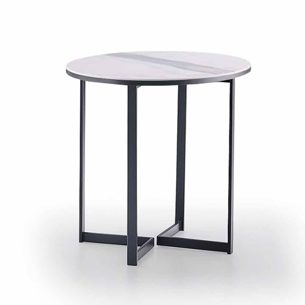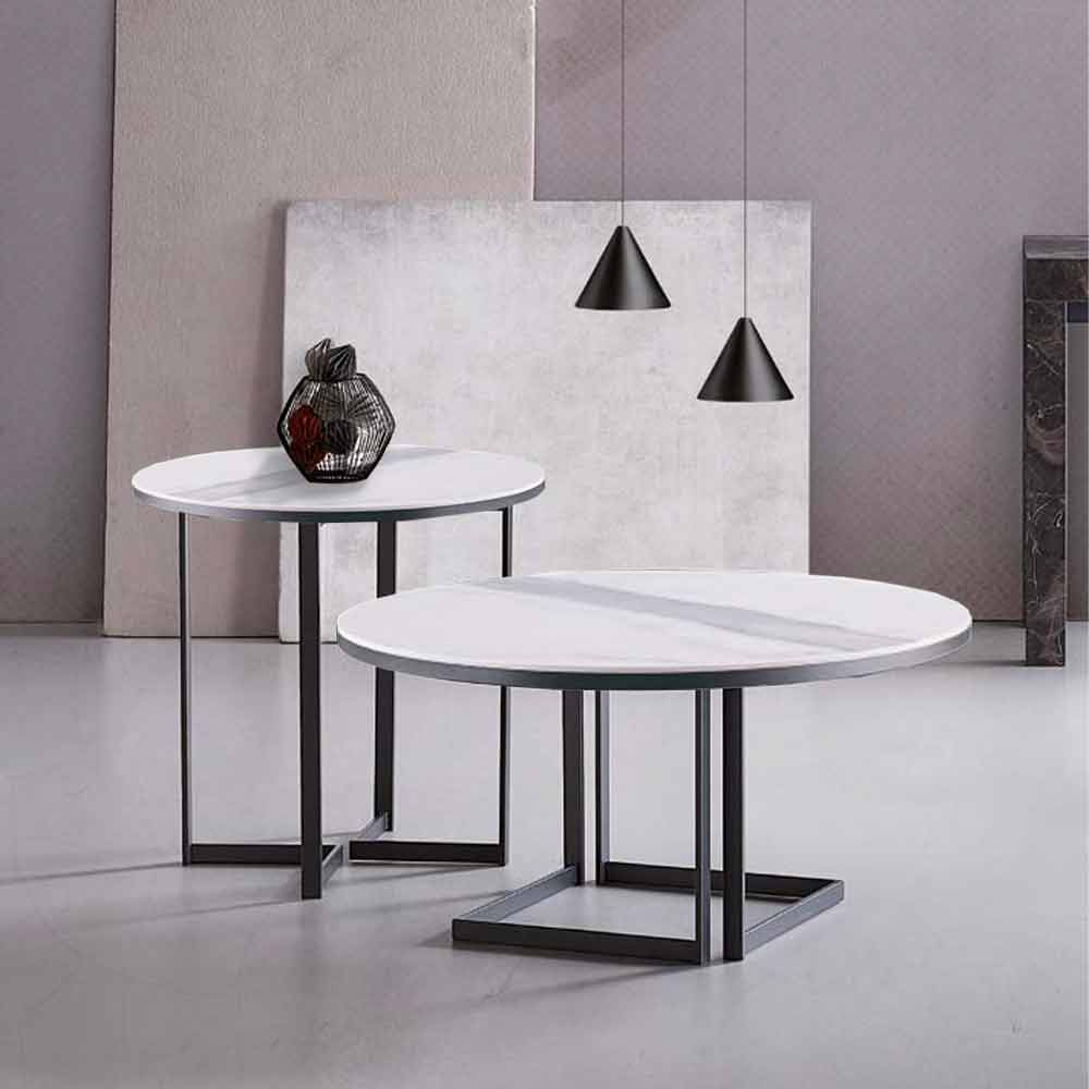 Tavolinë moderne kafeje në metal të llakuar me material guri me efekt mermeri, me cilësi të lartë Prodhuar në Itali.
