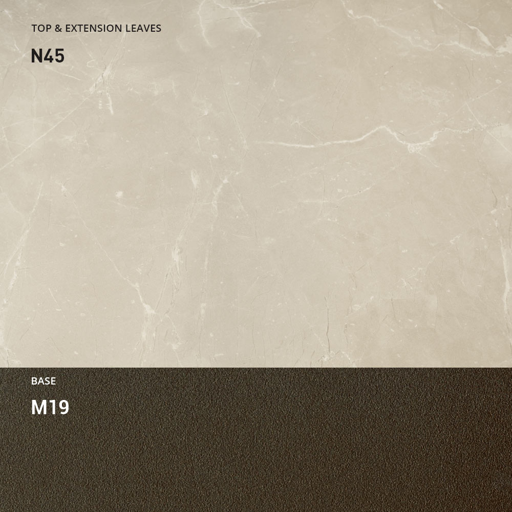 prej metali të lyer me bronz të stampuar është punuar me dorë në Itali. E karakterizuar nga linja elegante dhe thelbësore që shoqërojnë një dizajn të gjithanshëm, kjo pjesë e mobiljeve rezulton të jetë e përshtatshme për të harmonizuar