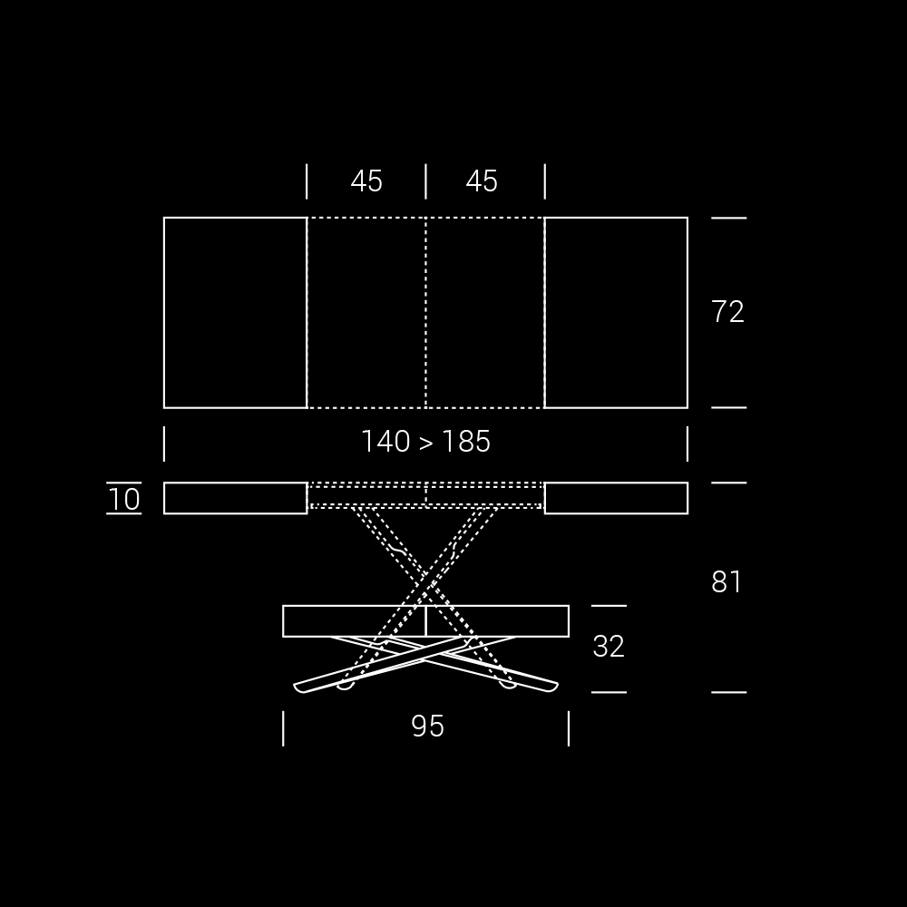 NB : kur hapni tavolinën është e nevojshme të ngrini zgjatimin, ta vendosni në nivelin e sipërm dhe, vetëm atëherë, ta hapni.