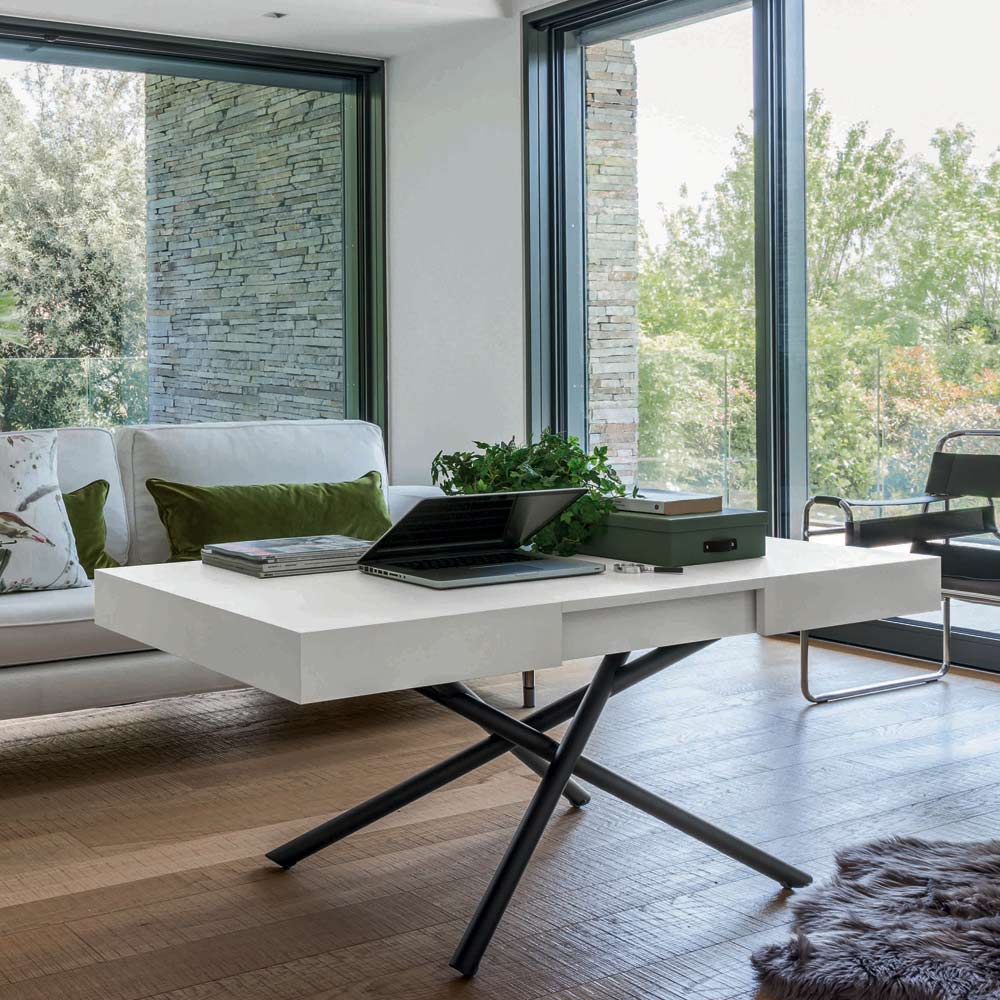 Tavolinë kafeje e transformueshme në dru melamine dhe metal Prodhuar në Itali.