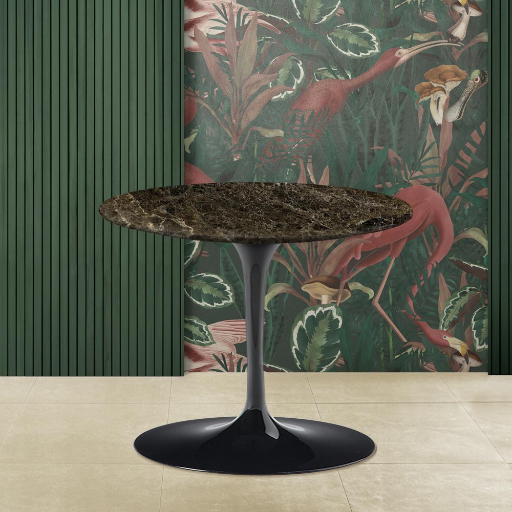 Tavolinë kafeje me majë të rrumbullakët në mermer perandori të errët dhe bazë prej alumini të lëmuar të prodhuar në Itali