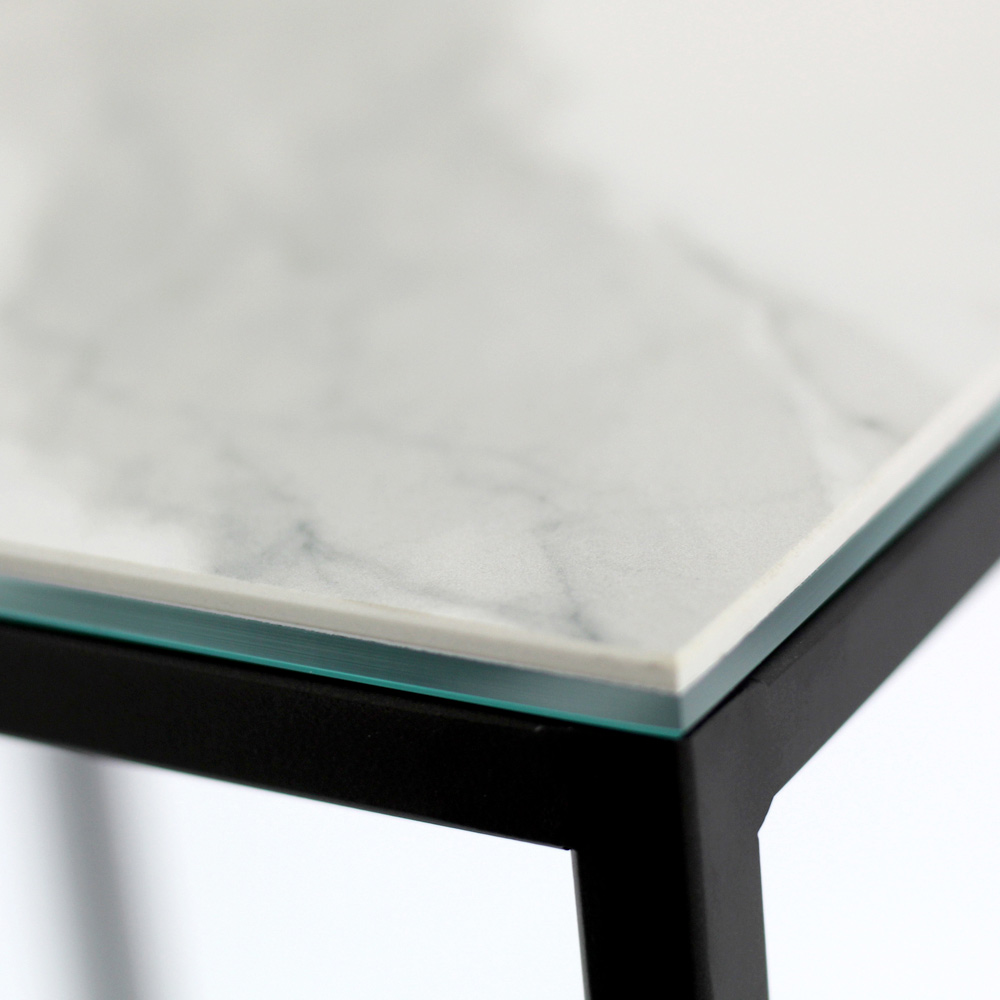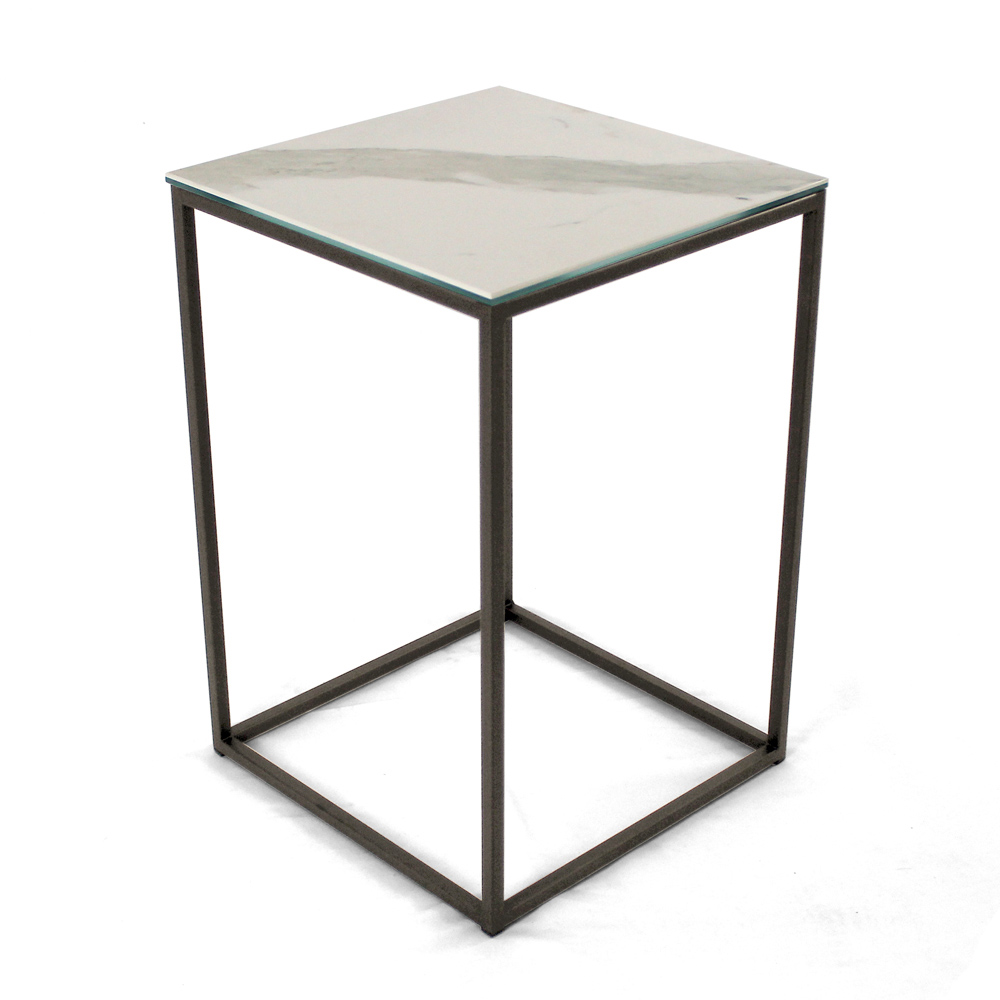 Tavolinë kafeje katrore me bazë çeliku të lyer dhe sipër me enë guri të bardhë me vena mat 3 mm të laminuara me xham notues 6 mm. Tavolinat e kafesë në stil modern përfaqësojnë mobiljet perfekte për të kompletuar dekorimin e çdo dhome ndenjeje dhe dhome ndenjeje. Këto produkte janë unike, elegante dhe funksionale në të njëjtën kohë falë përfundimeve të tyre të thjeshta dhe harmonike që i bëjnë të përshtatshme për çdo nevojë dhe rast përdorimi. Materialet e përdorura për ndërtimin garantojnë cilësi dhe rezistencë të madhe edhe me kalimin e kohës.