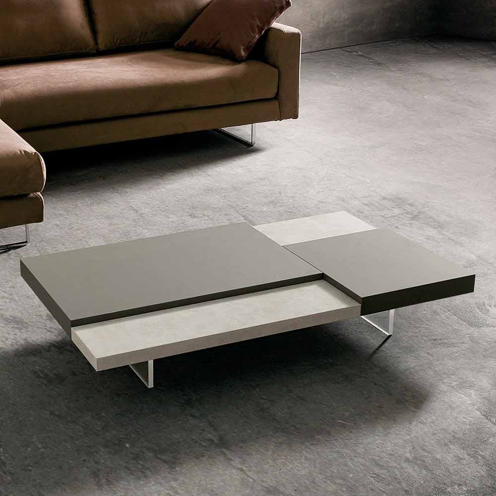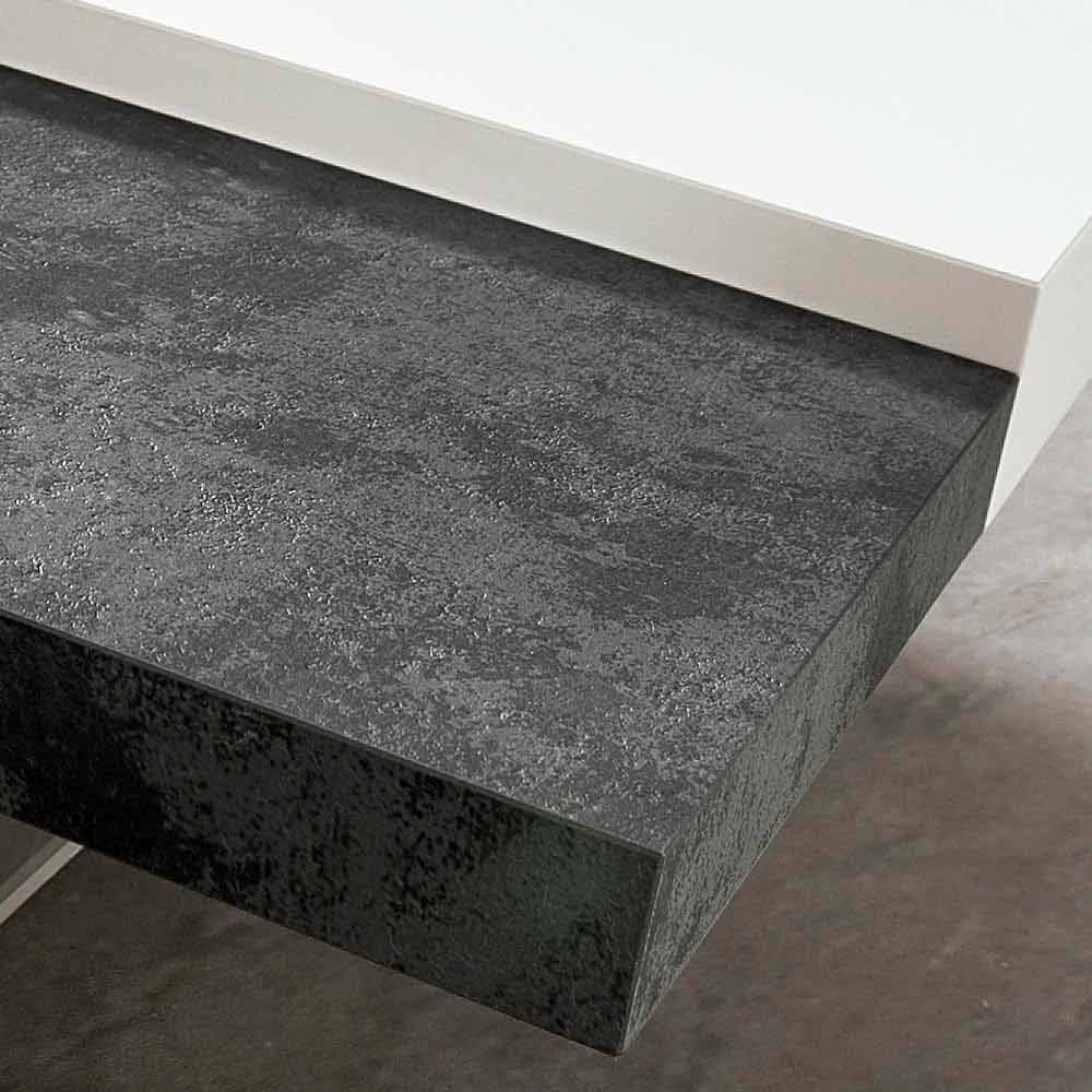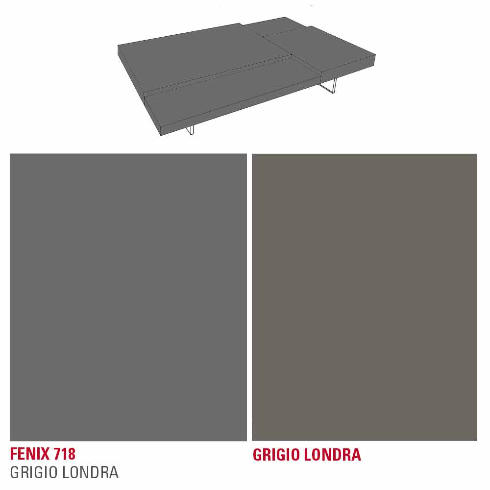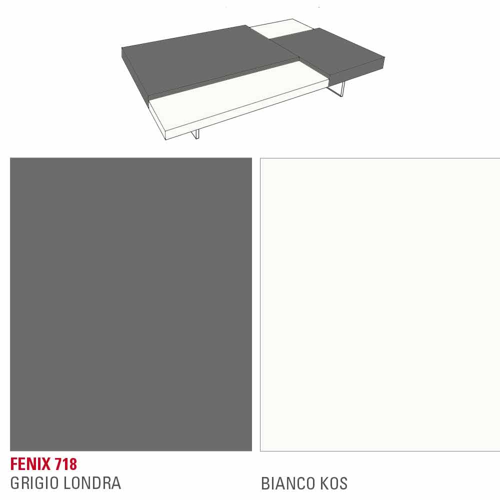 Tavolinë kafeje me majë hpl dhe majë të mbuluar me fenix të mbështetur nga një panel melamine dhe këmbë transparente polimetilmetakrilate . Në çdo dhomë ndenjeje është thelbësore prania e një tavoline kafeje, e cila përveçse përfaqëson një sipërfaqe mbështetëse praktike dhe funksionale, i jep harmoni mobiljeve dhe plotëson estetikën e saj falë linjave dhe formave magjepsëse dhe origjinale. Kjo pjesë e mobiljeve mishëron të gjitha karakteristikat themelore të një tavoline kafeje perfekte, duke u dëshmuar të jetë një ide e shkëlqyer për ata që duan të dekorojnë hapësirat e tyre me elementë me një stil të thjeshtë por me ndikim. Forma e veçantë e majave të vendosura në lartësi të ndryshme luan një rol të rëndësishëm në dizajnin e produktit pasi ofron një lojë ekskluzive kontrastesh. Për më tepër, mjeshtëria 100% Made in Italy dhe përdorimi i lëndëve të para si fenix çojnë në krijimin e një produkti veçanërisht rezistent , të këndshëm në prekje dhe jashtëzakonisht të errët .