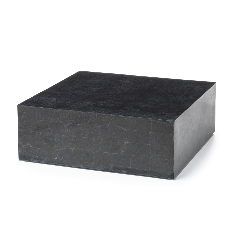 Tavolinë kafeje katrore me gurë fosil, me fije të zezë.