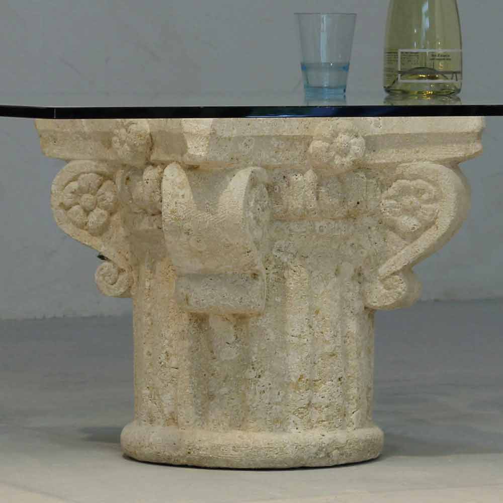 Tavolinë kafeje e bërë nga guri natyror dhe kristali Balos, dizajn klasik Tabela e kafes Balos është bërë tërësisht në Itali . Baza e saj është prej guri natyror Vicenza dhe është gdhendur me dorë nga blloku origjinal i gurit. Pjesa e sipërme e tryezës është prej kristali float (trashësi 12 mm), e shtruar në bazë. Guri natyror Vicenza përbëhet kryesisht nga karbonati i kalciumit, me origjinë nga kolapsi i Reef Coral dhe vendbanimi në fund të detit të organizmave detarë, siç janë predha, krustace dhe algat. Tabela e kafesë Balos vjen me një Certifikatë të Autenticitetit të Numëruar.