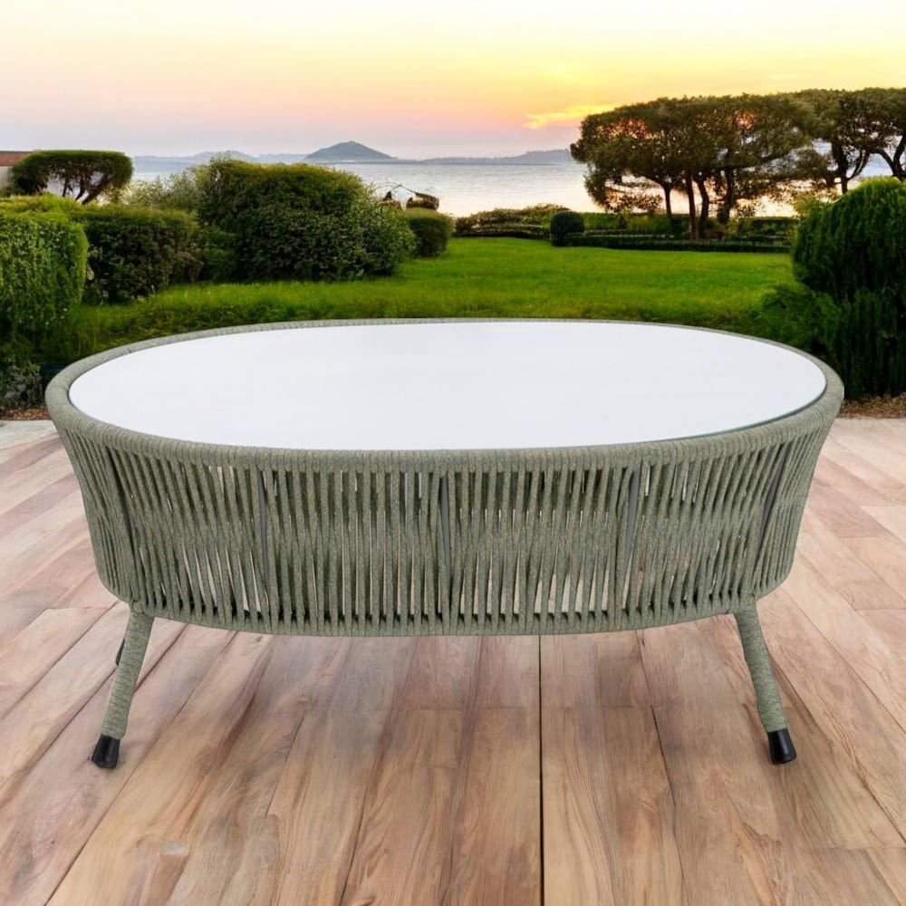 Tavolinë kopshti prej alumini, endje me litar+ dhe xham