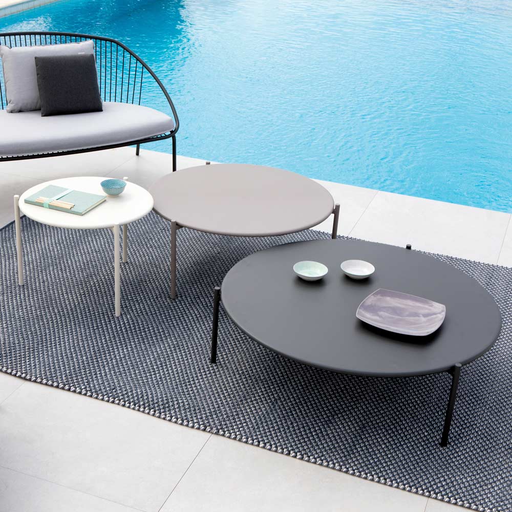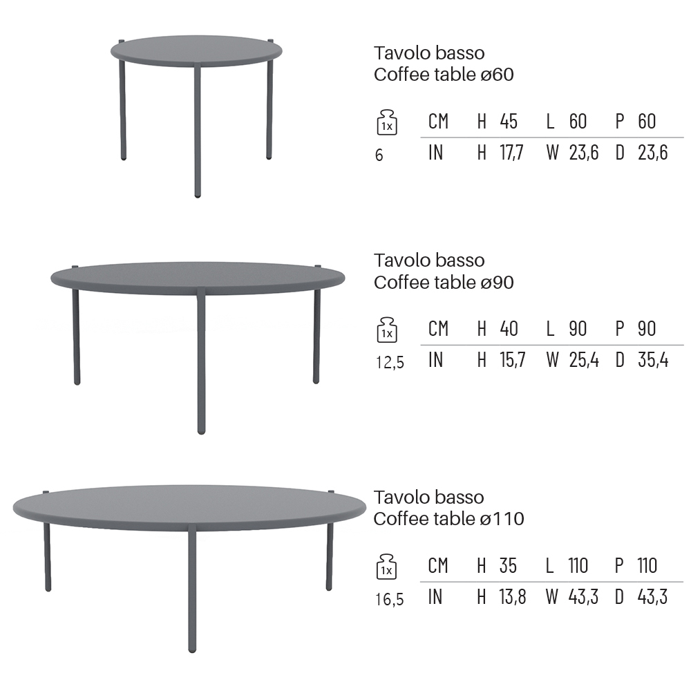 Tavolinë kopshti prej çeliku të galvanizuar me madhësi të ndryshme. Prodhuar në Itali.