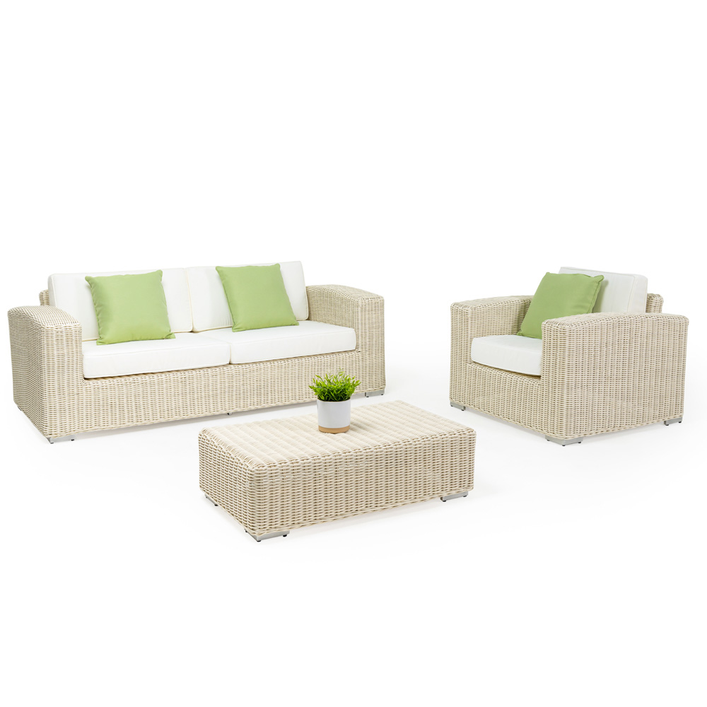 Stili i rafinuar , cilësia shumë e lartë e materialeve dhe format e tij të përkulura e bëjnë atë të përsosur për arredimin e brendshëm dhe të jashtëm . Falë përdorimit të materialeve speciale të cilësisë së lartë , kjo tavolinë kopshti nuk ka frikë nga moti i keq dhe ndryshimet e temperaturës falë certifikimit të fibrës së endur. Sedilja e madhe mund të strehojë rehat deri në 3 persona, në fakt është e përkryer për momentet tuaja të rehatisë.