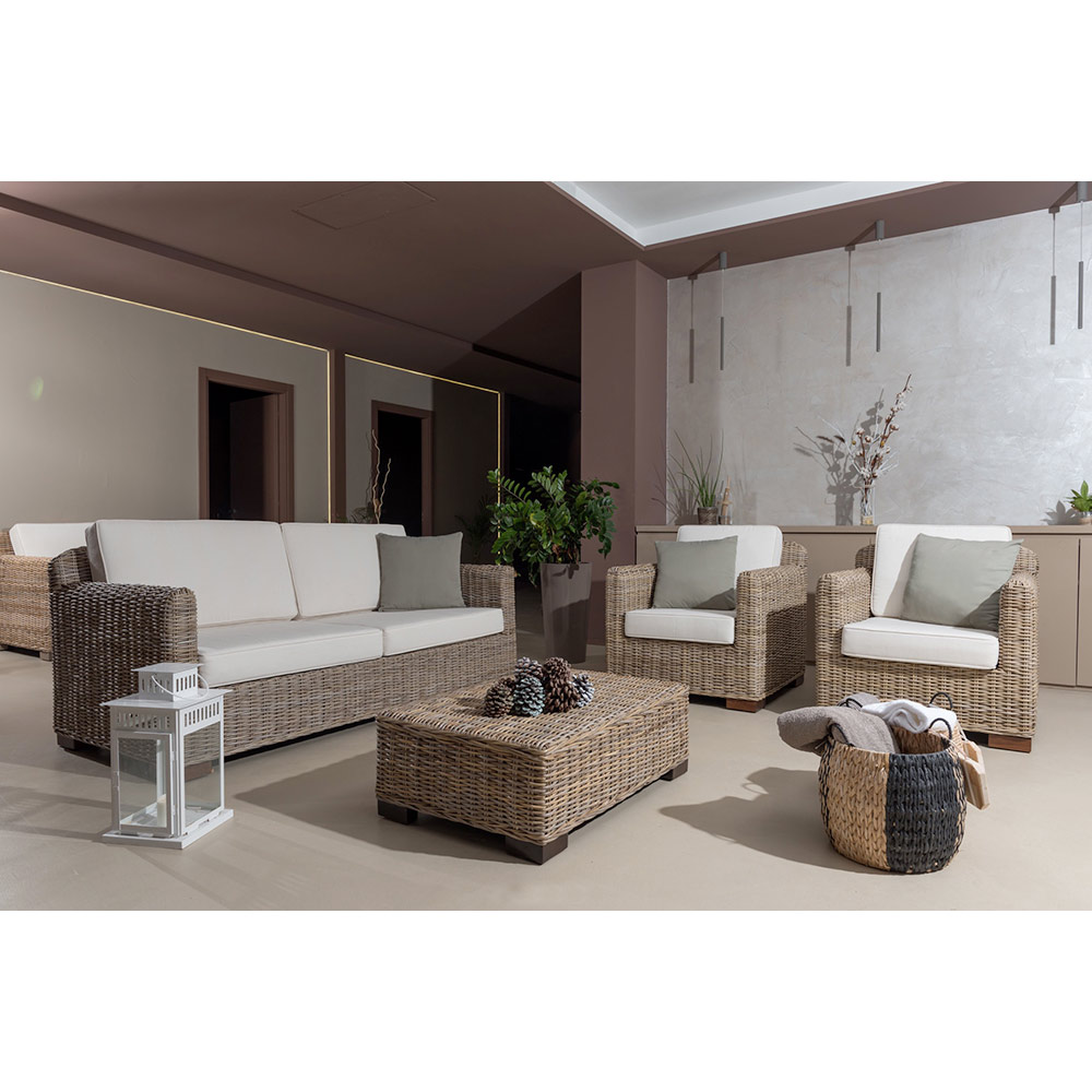 Tavolina pouf i përket një koleksioni të tërë karakterizohet nga kubu natyrale gri me linja të drejta dhe një ndenjëse të gjerë. Komoditet dhe thelbësore në një stil të përjetshëm që merr formë falë përdorimit të fibrave natyrale që ofron natyra. Produktet e këtij koleksioni janë të përshtatshme për mobilimin e hapësirave të jashtme të strehuara si veranda, ballkone, tarraca, veranda dhe belveder, duke gjallëruar ambientet me ngrohtësi dhe stil unik. Ato janë gjithashtu të përshtatshme për çdo ambient të brendshëm .