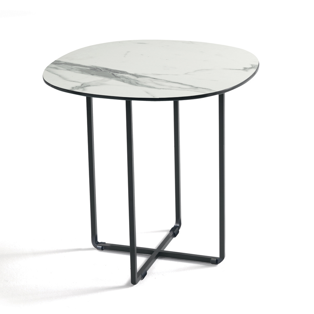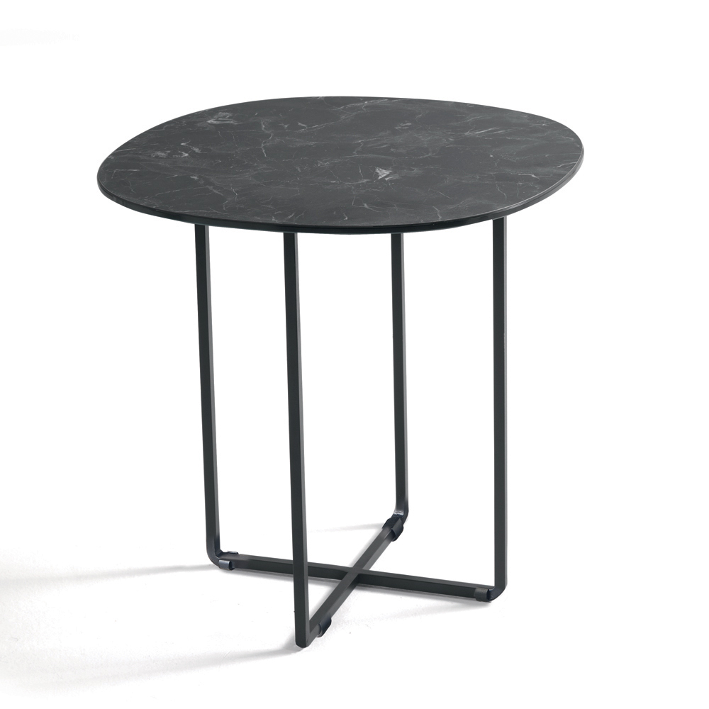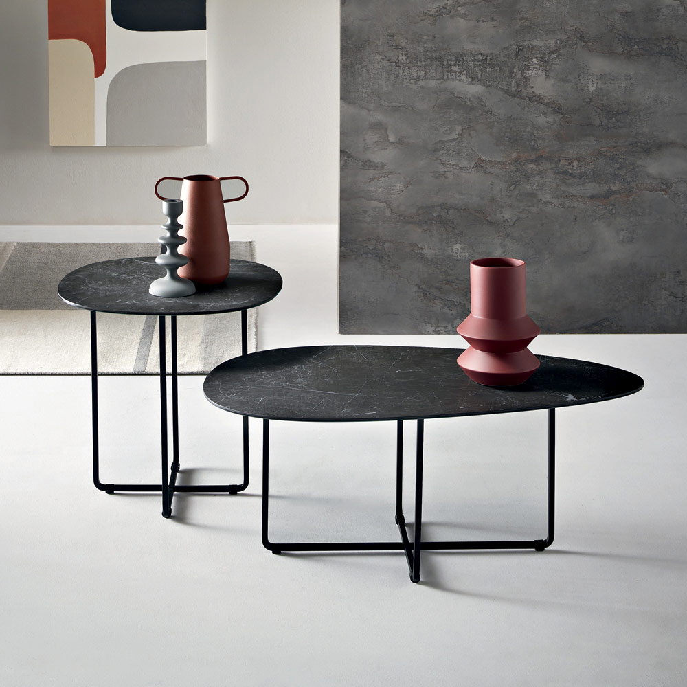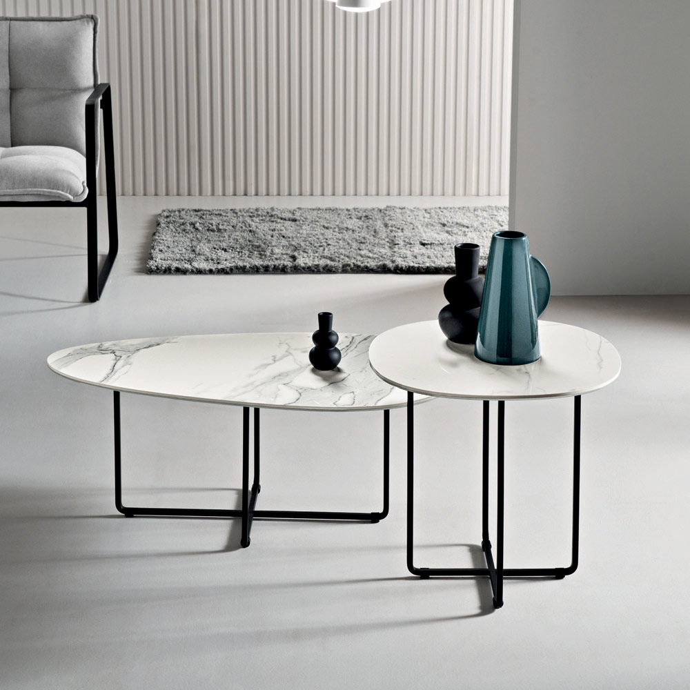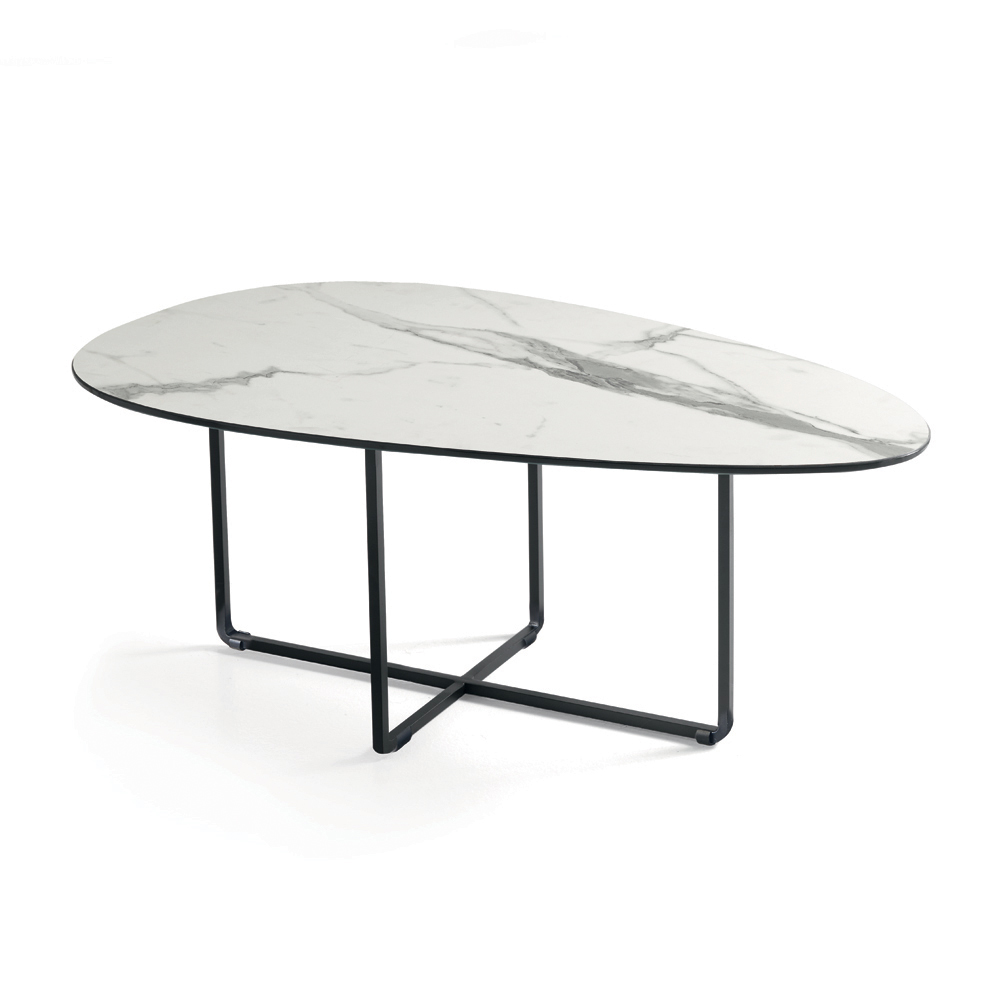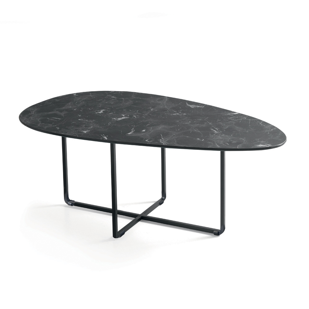 Korniza është bërë prej metali të lyer , e fortë por vizualisht e lehtë, e aftë të integrohet në mënyrë harmonike në hapësirat moderne. Format e pastra dhe me përmasa të mira i japin tavolinës një estetikë elegante dhe të përjetshme, perfekte për një sërë kontekstesh mobilimi.