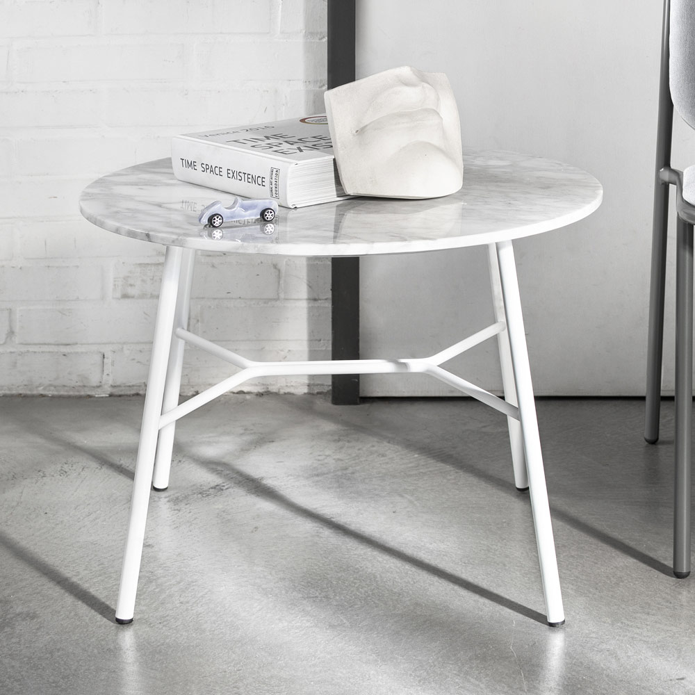 Tavolinë kafeje tërësisht e prodhuar në Itali me majë mermeri të rrumbullakët dhe strukturë metalike të lyer . Një mobilie origjinale dhe e gjithanshme që lind nga nevoja për të arreduar në mënyrë ekskluzive dhe të rafinuar ambientet e banimit të shtëpisë, por edhe ambjentet e pritjes në hotele dhe ambiente me kontratë si bare dhe restorante. Një tavolinë kafeje që shpreh përmes formave të saj të thjeshta dhe minimale të gjithë elegancën e mermerit dhe modernitetin e bazës metalike, duke krijuar një zgjidhje mobilimi të aftë për të pushtuar qendrën e vëmendjes falë personalitetit të saj eklektik dhe karakterit të saj novator.