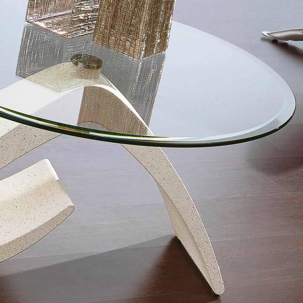 Tavolinë kafeje e prodhuar në Itali me majë të rrumbullakët në xham transparent të pjerrët dhe bazë në mermer mineral , material i përftuar nga përzierja e pluhurave të mermerit. Një dizajn ekskluziv dhe elegant e karakterizon këtë pjesë të mobiljeve me një personalitet të rafinuar , ideale për të arreduar me karakter çdo ambient banimi shtëpiak, duke sjellë me vete një prekje avangarde . Falë përdorimit të lëndëve të para me cilësi të lartë dhe mjeshtërisë 100% Made in Italy, lind një tavolinë kafeje e çmuar dhe e vlefshme që shquhet për elegancën dhe kreativitetin e saj në forma. Baza në mermer mineral i ofron tavolinës së kafesë qëndrueshmëri dhe qëndrueshmëri të shkëlqyer , si dhe i jep estetikës stilin e saj të fortë modern. Figura e tij e veçantë e karakterizuar nga linja të thjeshta gjeometrike krijon një harmoni të mrekullueshme me formën e butë të pjesës së sipërme të xhamit, duke i dhënë dizajnit të produktit një sens ekskluziv estetik.