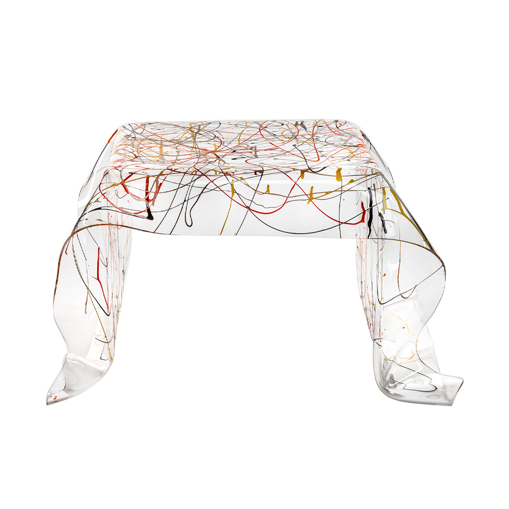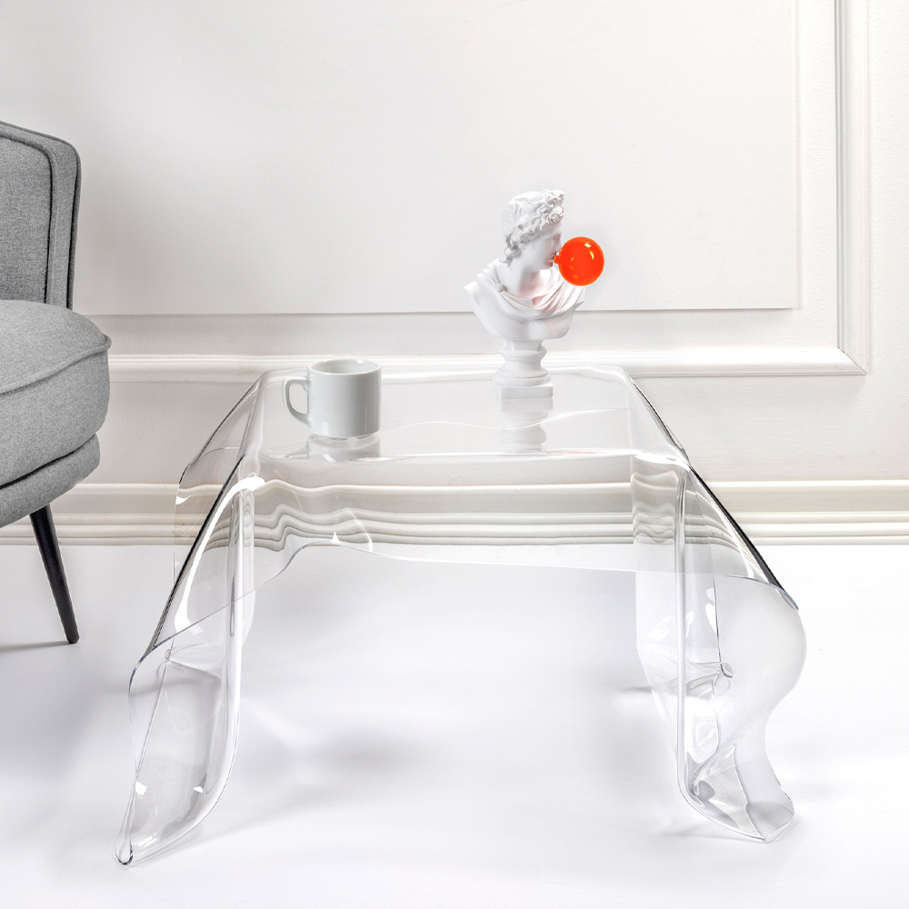 E bërë me një fletë prej pleksiglasi 100% të virgjër polimer PMMA , tavolina e kafesë është rezultat i një procesi artistik unik: çdo pjesë mbështillet me dorë në temperatura të larta , duke e shndërruar materialin në një objekt me stil unik dhe të papërsëritshëm. Teknika e përdorur i jep çdo tavoline kafeje një karakter dallues, pothuajse sikur secila kurbë të tregonte historinë e krijimit të saj.
