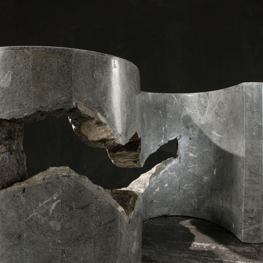 Guri fosil pritet me dorë, në formën e pllakave të vogla, nga mjeshtra të aftë, të cilët më pas i aplikojnë ato një nga një, sikur të kompozojnë një mozaik në një strukturë kompensatë detare ose në një kallëp tekstil me fije qelqi.
