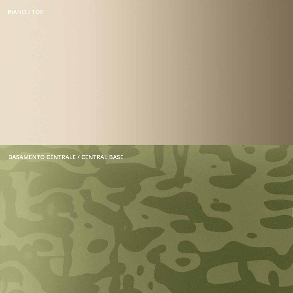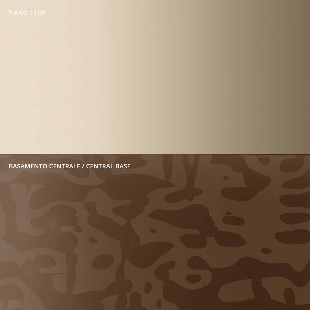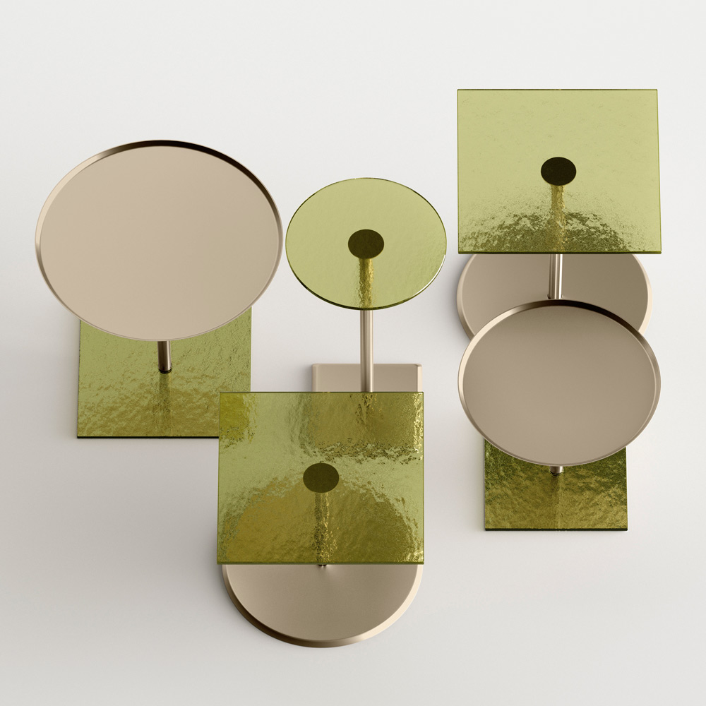 Tavolinë kafeje e karakterizuar nga origjinaliteti dhe eleganca e formave të pjesës së sipërme dhe të bazës që rrisin detajin e trungut metalik qendror, të kthyer me kujdes në trashësi dhe të përfunduar në sipërfaqe. Tavolina e kafesë, e vetme ose në grup, përshtatet për të mobiluar çdo dhomë në shtëpi dhe për t'u kontraktuar me një prekje unike .