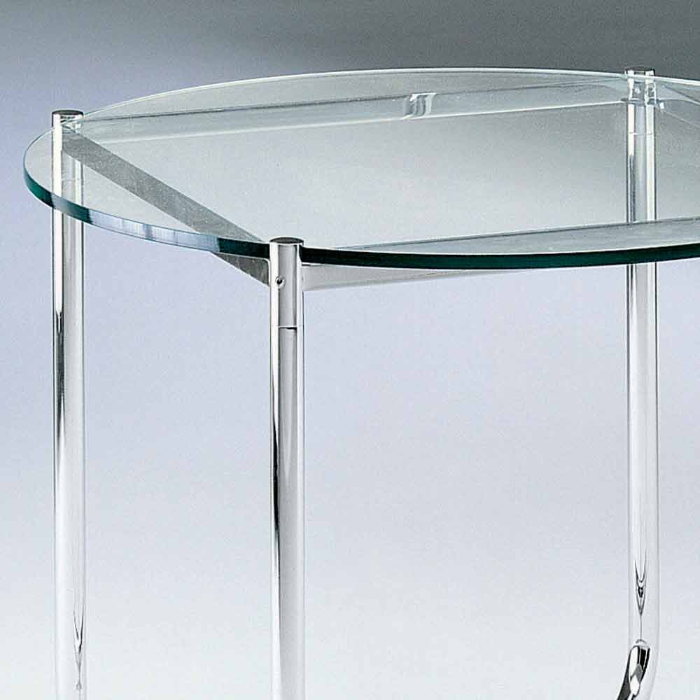 Tavolinë kafeje e rrumbullakët prej qelqi dhe çeliku të zbutur Prodhuar në Itali.