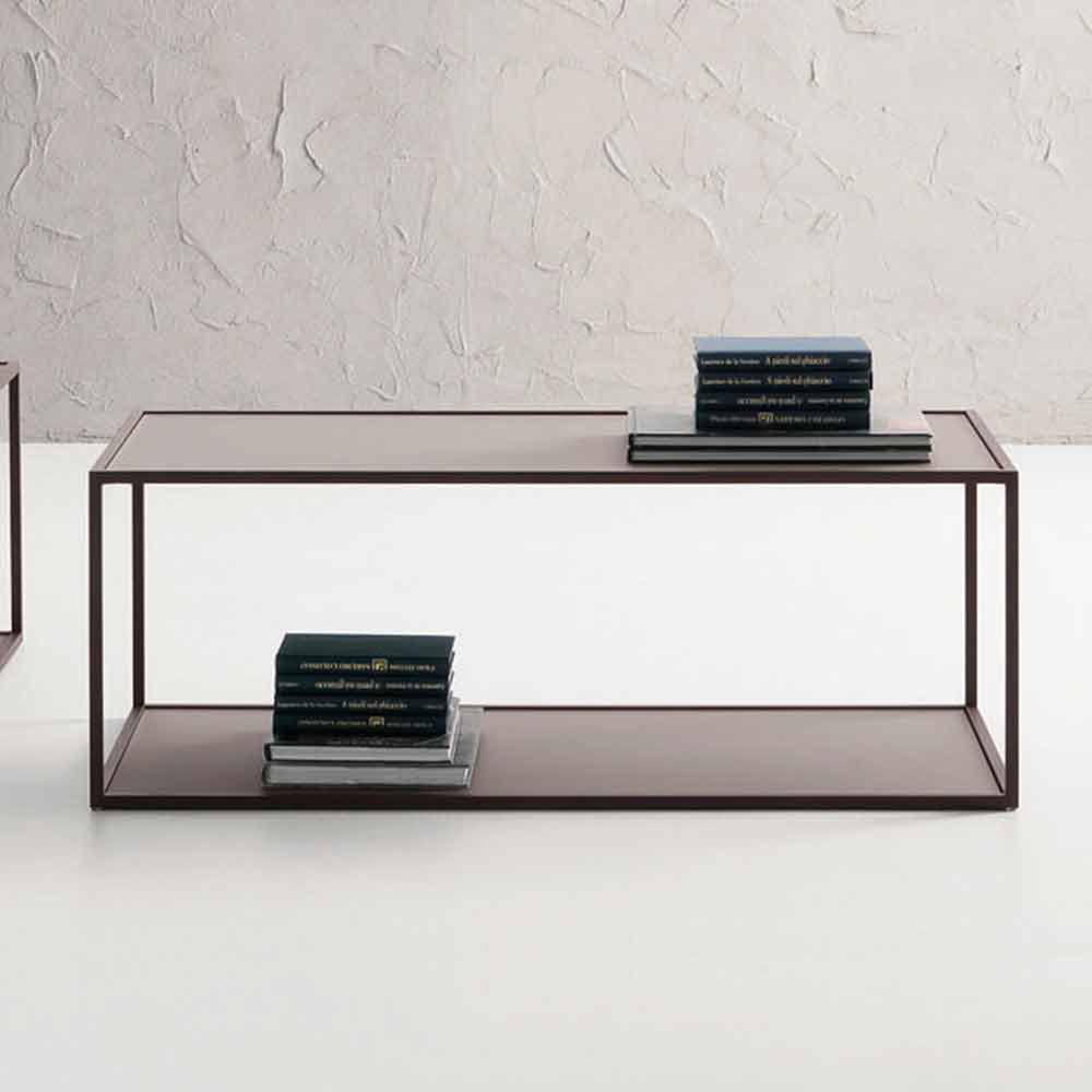 Tavolinë kafeje e prodhuar në Itali me strukturë metalike të lyer me grafit dhe majë të dyfishtë në gotë saten kundër gjurmëve të gishtave me fund të baltës Një produkt, ideja e të cilit bazohet në thjeshtësinë dhe thelbësinë për t'i dhënë jetë një orendi me një stil modern dhe të gjithanshëm, i aftë të përshtatet në çdo dhomë të gjallë, duke sjellë me vete një prekje inovative dhe elegante. Konformimi i veçantë i strukturës lejon marrjen e një sipërfaqe të dyfishtë mbështetëse duke ofruar kështu mundësinë e organizimit të objekteve të ndryshme të dobishme si libra, revista ose telekomandë por edhe elemente të thjeshtë dekorativë që pasurojnë modelin dhe rrisin vlerën e tij duke e theksuar atë. estetikën ekskluzive .