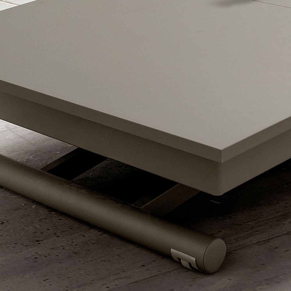ide novatore . Ideale për t'u vendosur në qendër të dhomës tuaj të ndenjes duke përftuar kështu një sipërfaqe mbështetëse praktike, tavolina e kafesë shndërrohet lehtësisht dhe në pak minuta në një tavolinë të vërtetë ngrënieje falë mekanizmit që ju lejon të rregulloni lartësinë e saj me anë të një pistoni fërkimi. dhe te zgjatimet që e çojnë sipërfaqen në gjatësi maksimale 200 cm. Rezultati është një zgjidhje mobilimi jashtëzakonisht funksionale e aftë për të luajtur një rol të dyfishtë edhe në dhoma të vogla. Për më tepër, nuancat e ngjyrave të propozuara së bashku me