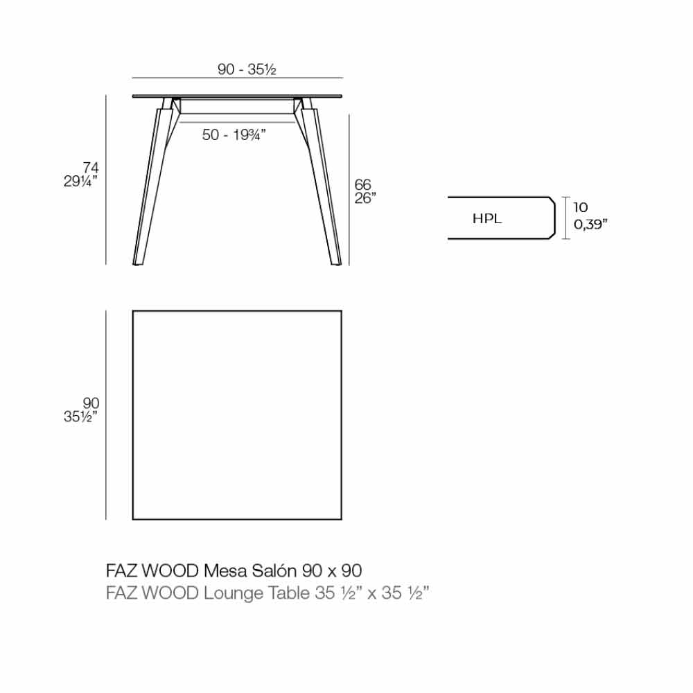 Tavolinë kafeje me këmbë në dru hiri të lehta ose të errëta dhe maja hpl në përfundime të ndryshme dhe 2 madhësi katrore.