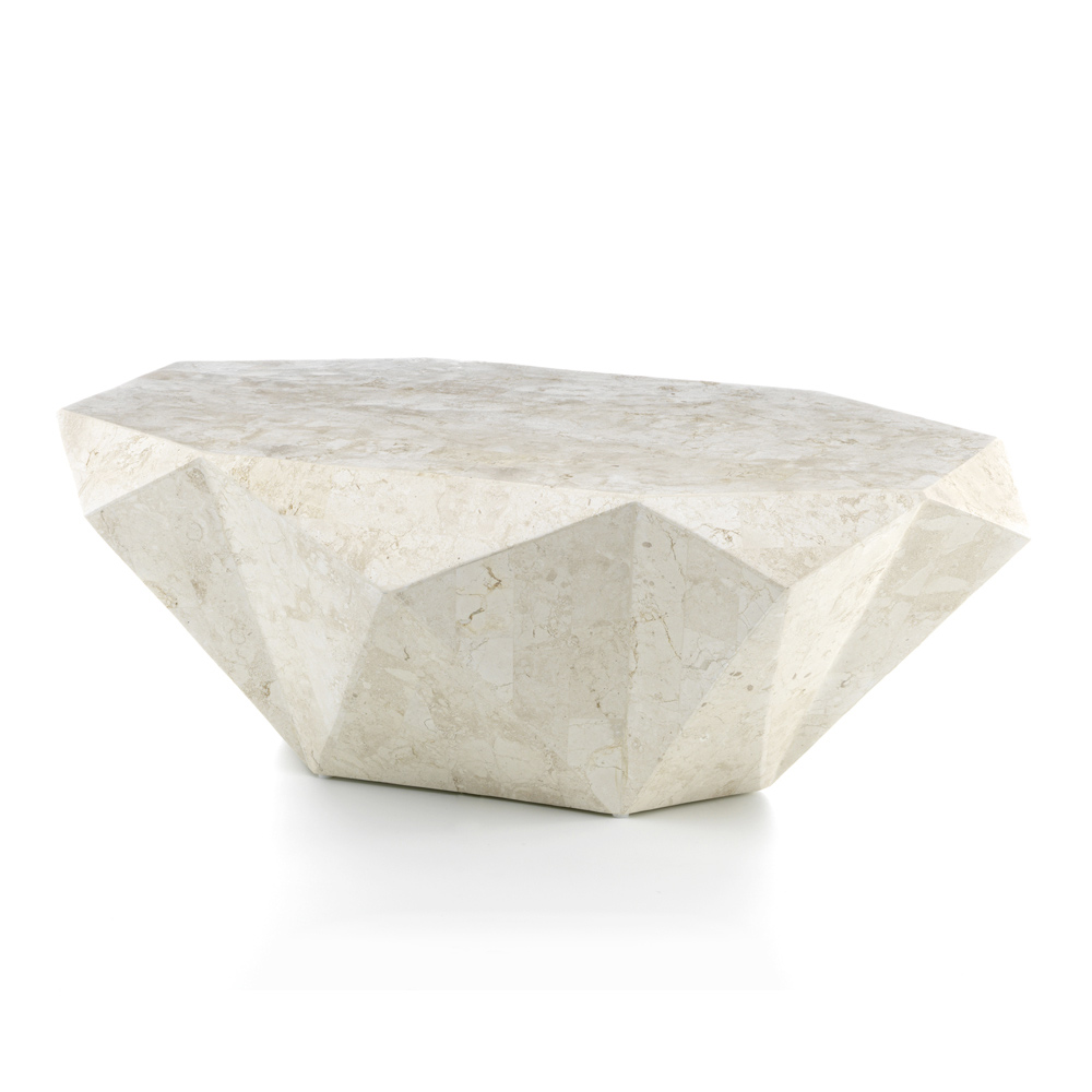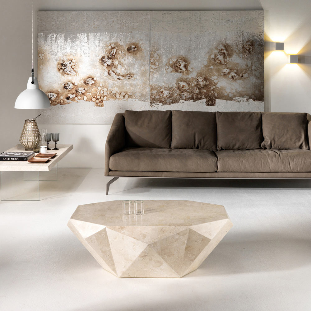 Tavolinë kafeje me dizajn modern në gurë fosil.