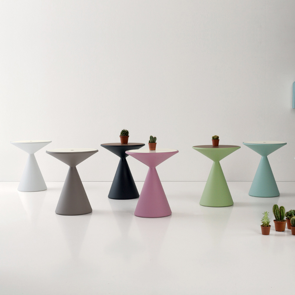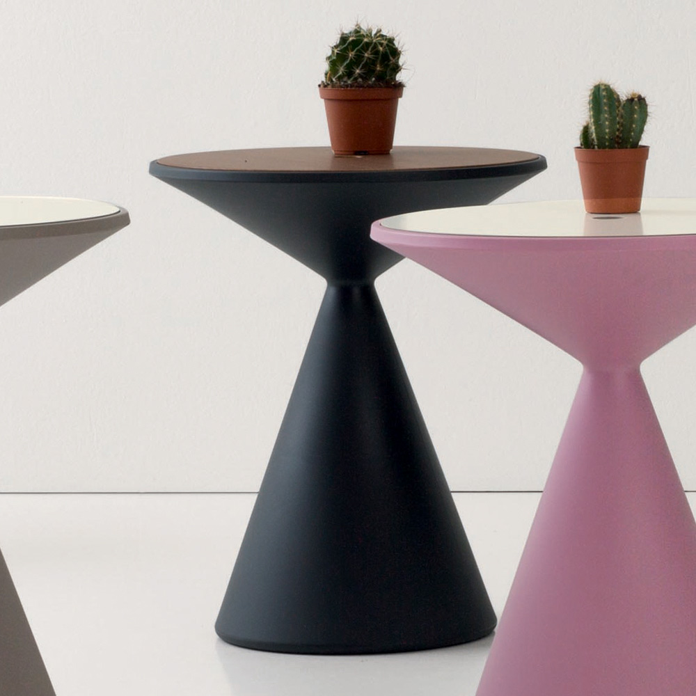 Tavolinë e rrumbullakët e jashtme nga polietileni me ngjyrë me enë të brendshme prodhim Italie.