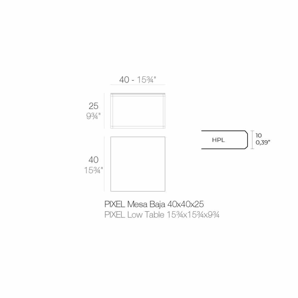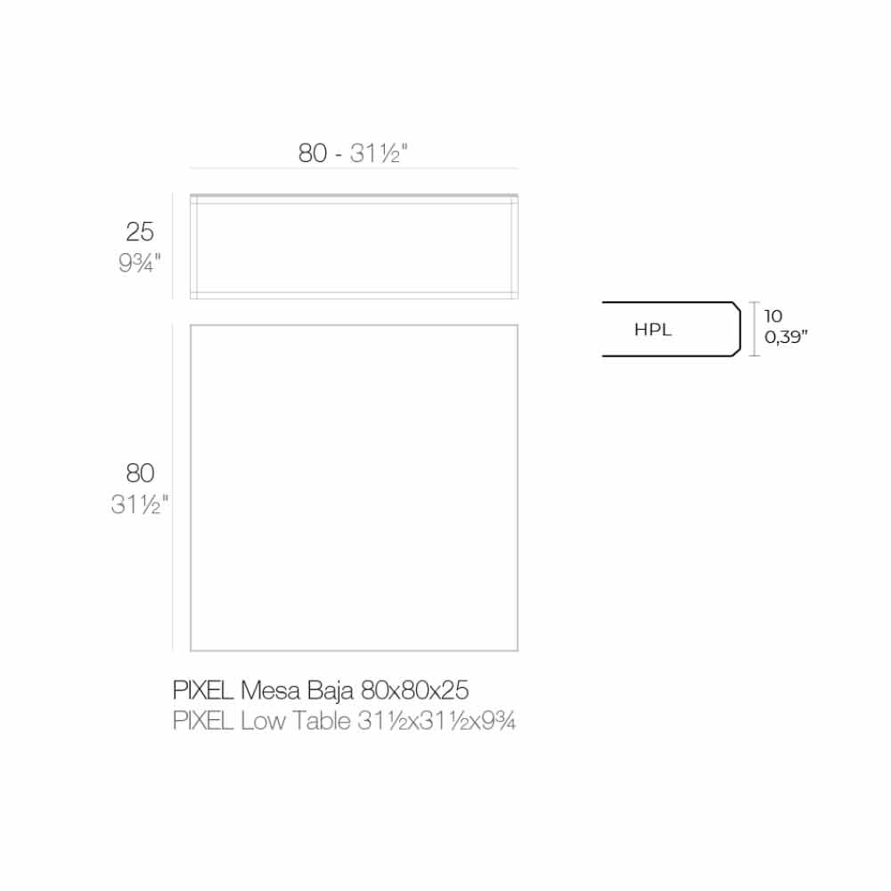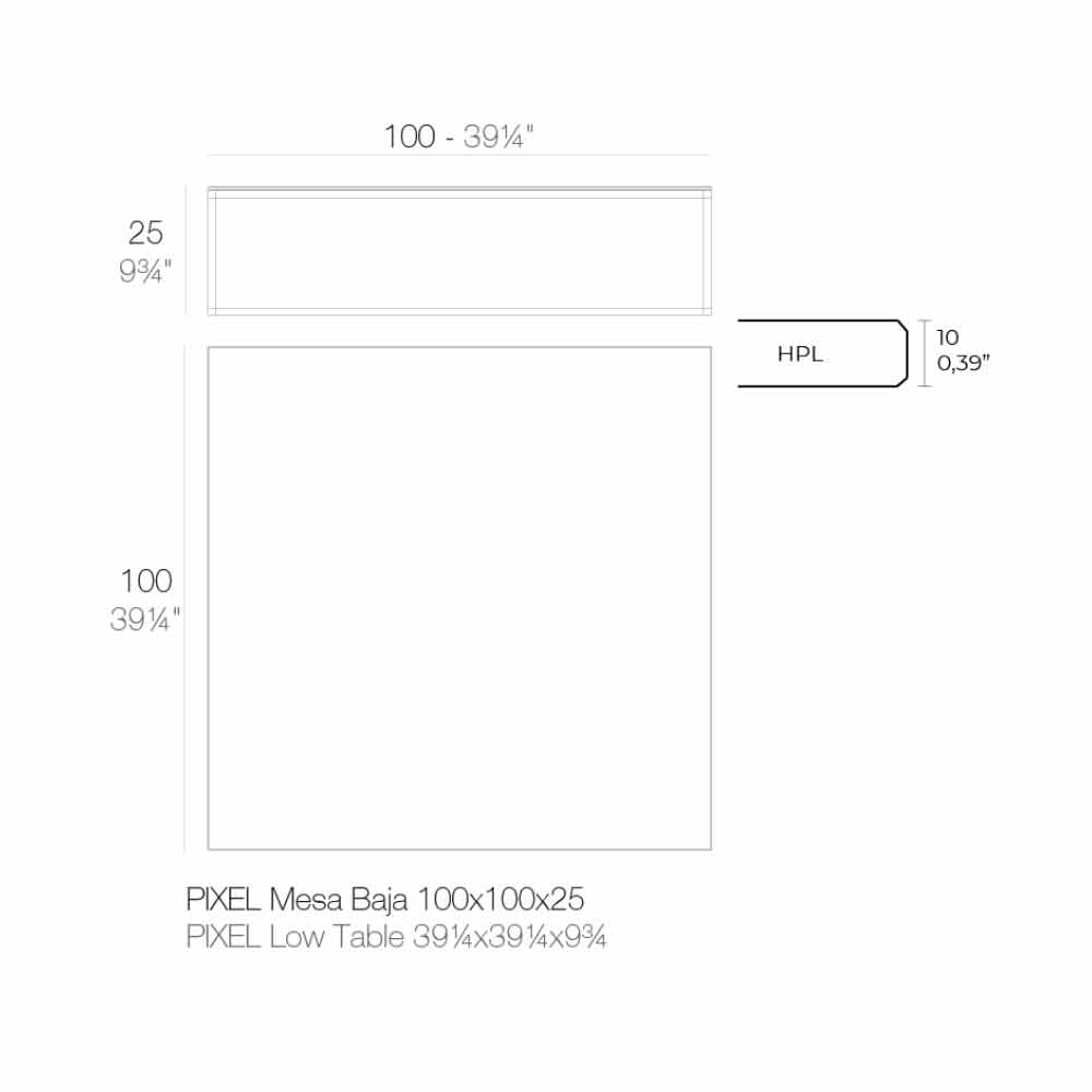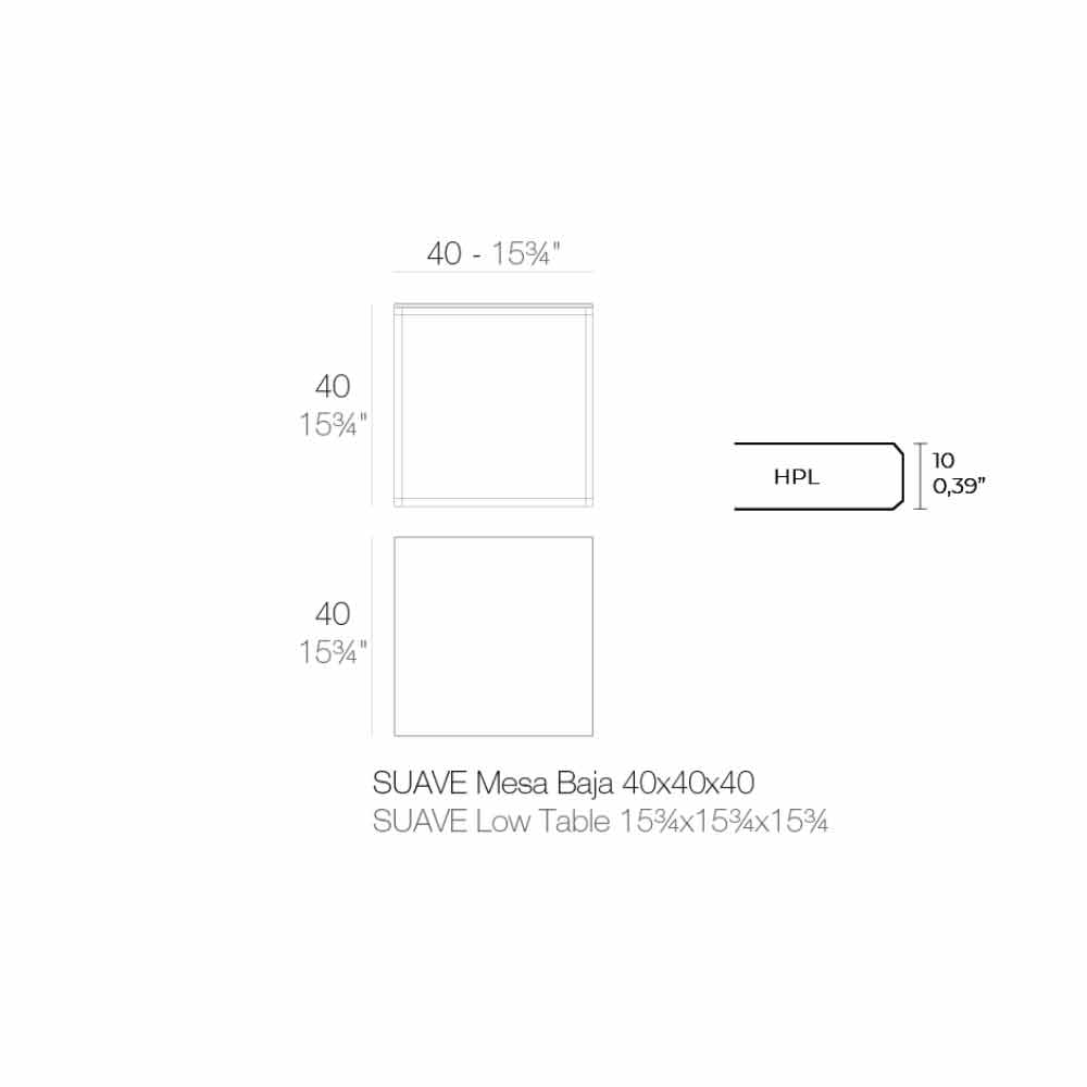 Tavolinë kafeje me dizajn katror për sallonin e kopshtit në majë alumini dhe hpl të zi, 4 madhësi dhe 2 lartësi.
