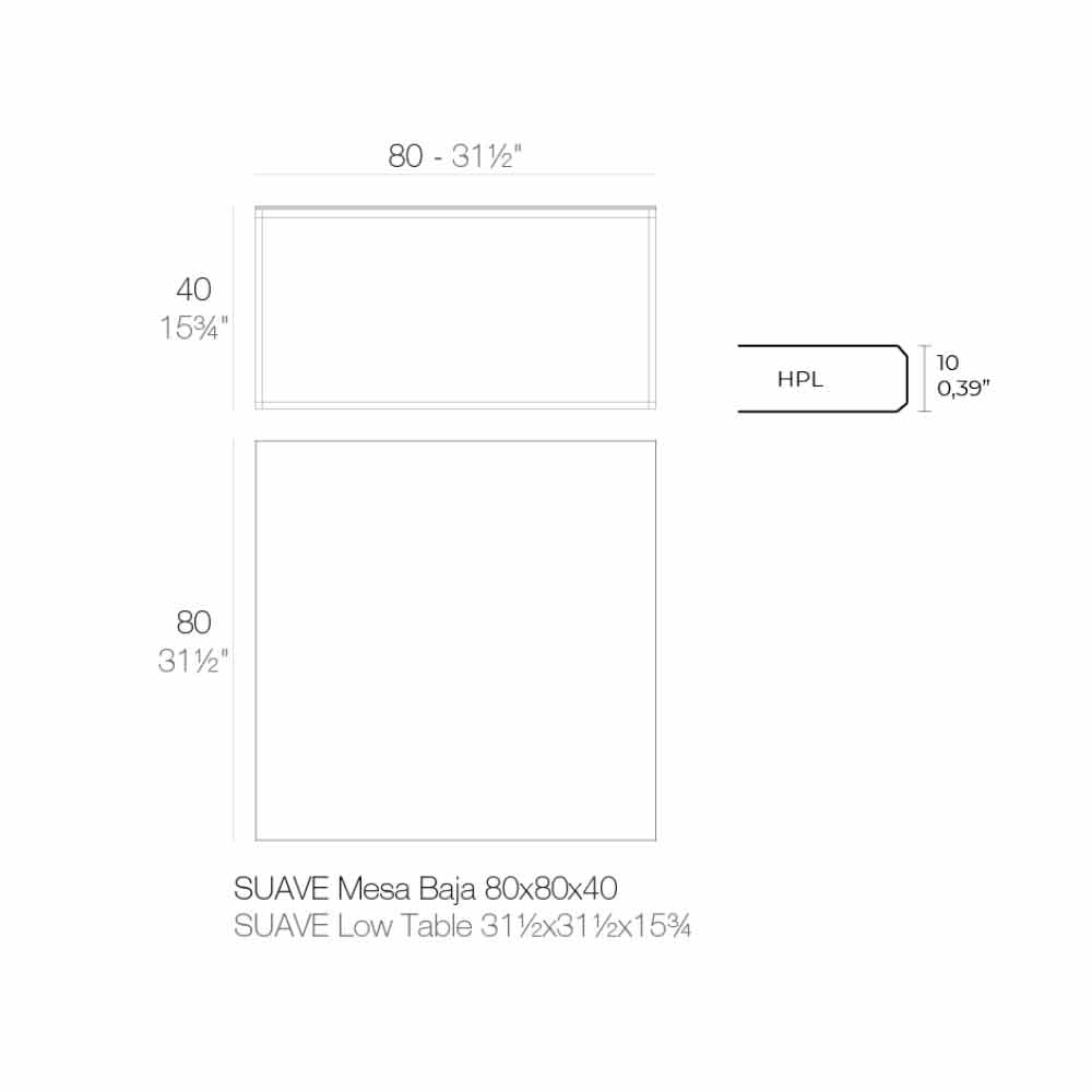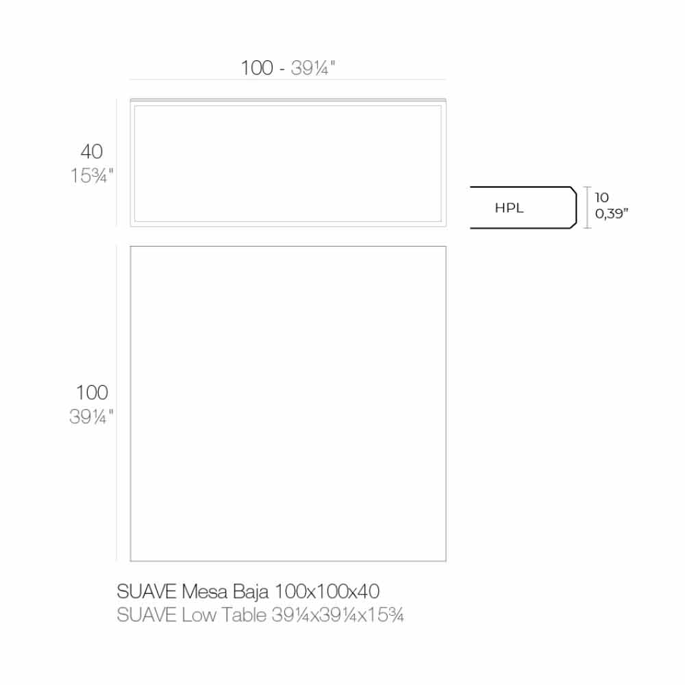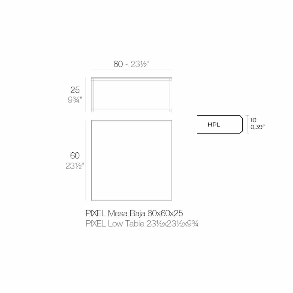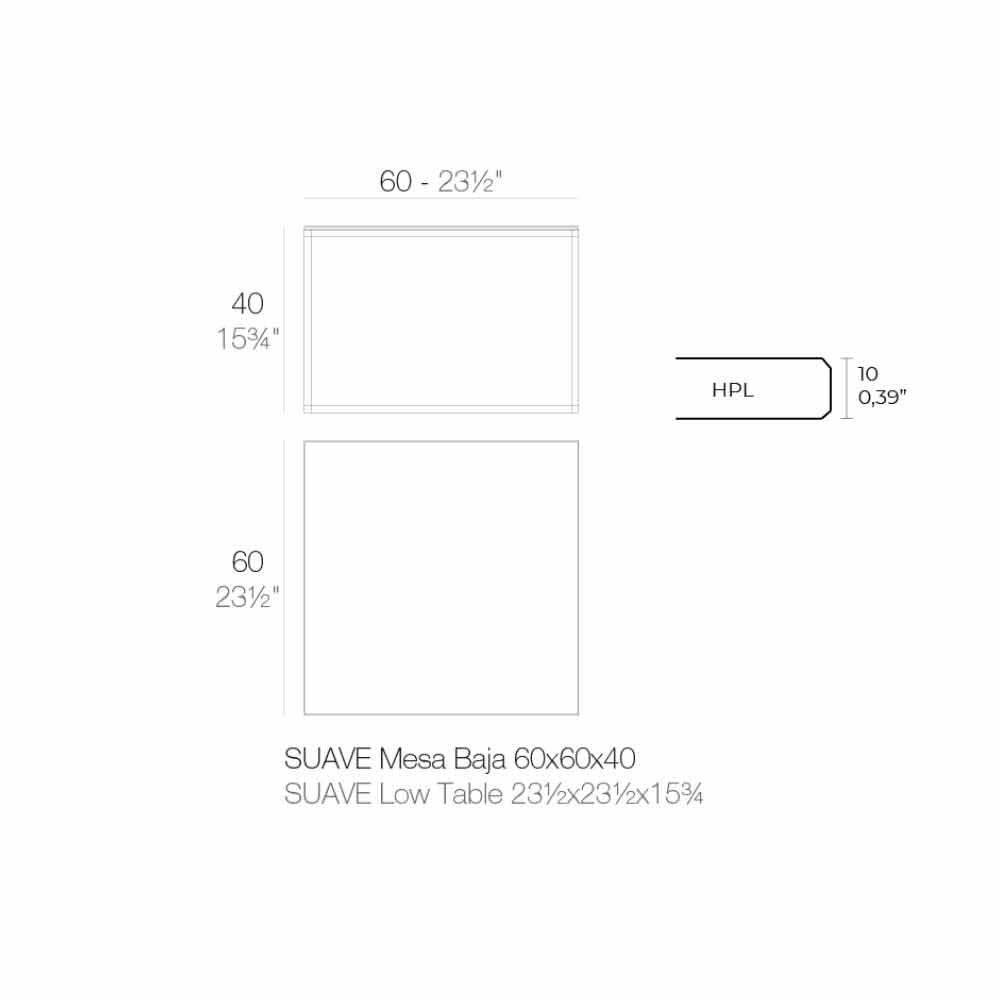 Tavolinë kafeje me dizajn katror për sallonin e kopshtit në majë alumini dhe hpl të zi, 4 madhësi dhe 2 lartësi.
