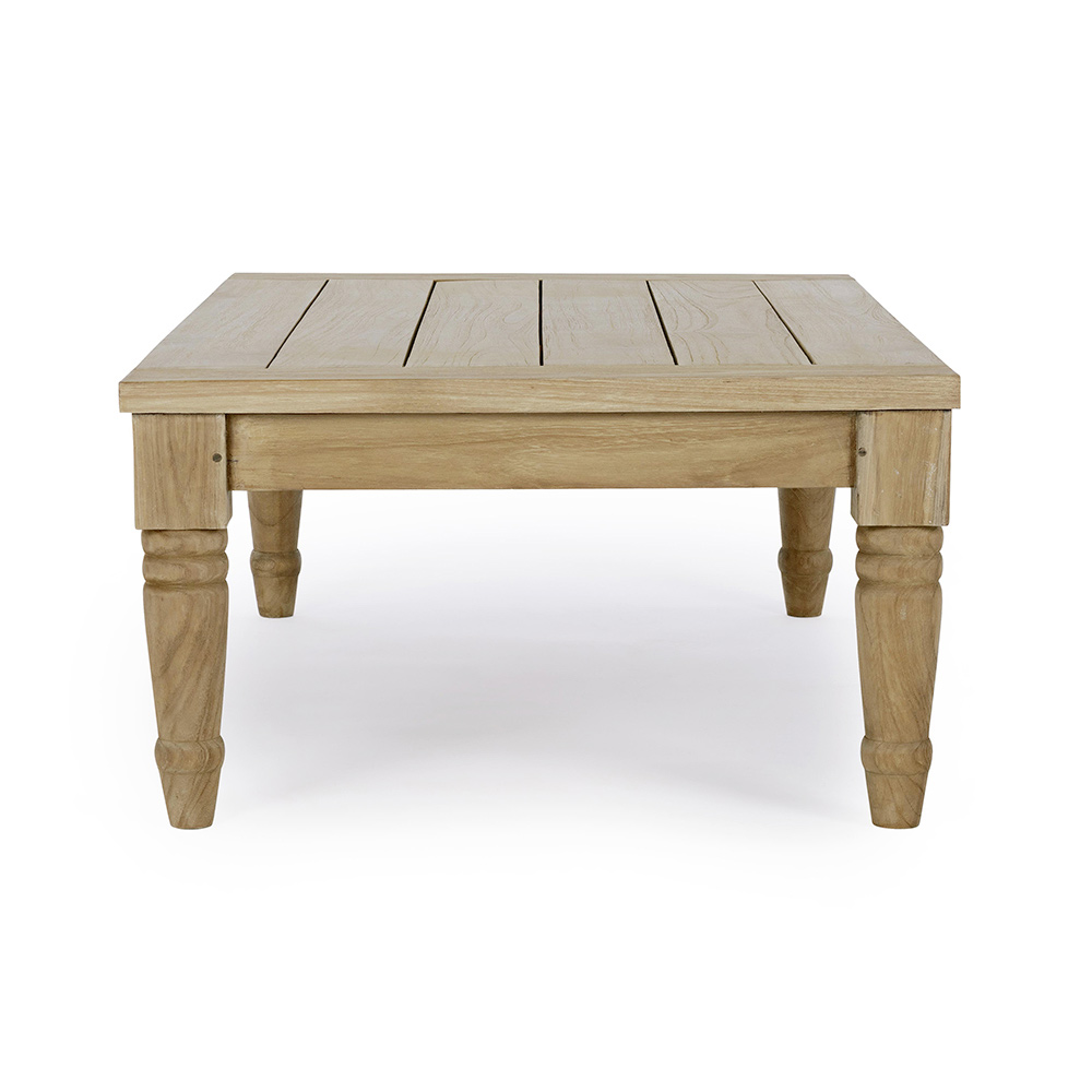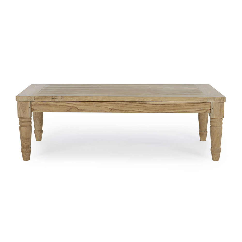 Tavolinë kafeje drejtkëndëshe në dru tik me përfundim fshatar.
