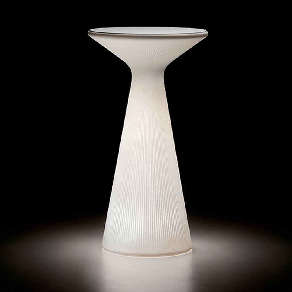 Tavolinë kafeje errumbullakët në natyrë prodhuar në Itali me strukturë polietilenidhe majë të bardhë HPL. Thjeshtësia dhe funksionaliteti e dallojnë këtë ideal modern të tryezës së lartë për t'u përdorur si një sipërfaqe praktike mbështetëse, por në të njëjtën kohë e aftë të luajë një rol thjesht dekorativ falë dizajnit të tij inovativ dhe origjinal. Sipërfaqja e veçantë me vija që mbulon të gjithë bazën e produktit e bën estetikën e tryezës së kafesë interesante, të pasuruar me dritën LED RGB e cila, duke ndriçuar strukturën, i jep jetë atmosferave ideale për të kaluar mbrëmje të mrekullueshme në shoqëri në hapësira shtëpiake si kopshte dhe tarraca por edhe në ambiente me kontratë ku është e nevojshme të gjesh një zgjidhje arredimi që të jetë sa funksionale aq edhe estetikisht tërheqëse.