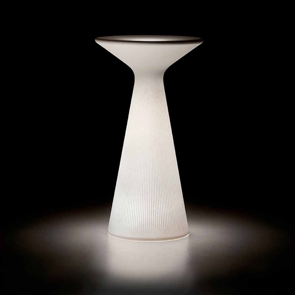 Tavolinë kafeje e rrumbullakët në natyrëprodhuar në Italime strukturë të bardhë polietileni karakterizuar nga sipërfaqja e veçantë me shirita që mbulon të gjithë bazën, duke krijuar lojëra origjinale të dritës dhe hijes. Së bashku me këtë veçori, ajo që e bën dizajnin e këtij produkti unik dhe veçanërisht interesant është drita RGB LED që krijon atmosferë moderne dhe joshëse ideale për mbrëmje të mrekullueshme me miqtë në hapësira të jashtme shtëpiake si kopshte apo tarraca por edhe mjedise të kontraktuara në të cilat një mënyrë unike dhe krijuese pa lënë pas dore aspektin themelor funksional të produktit.