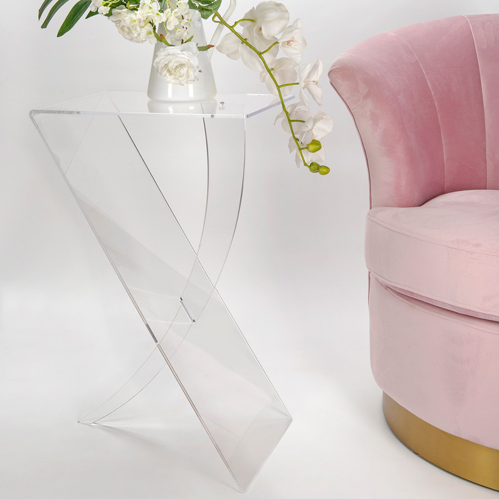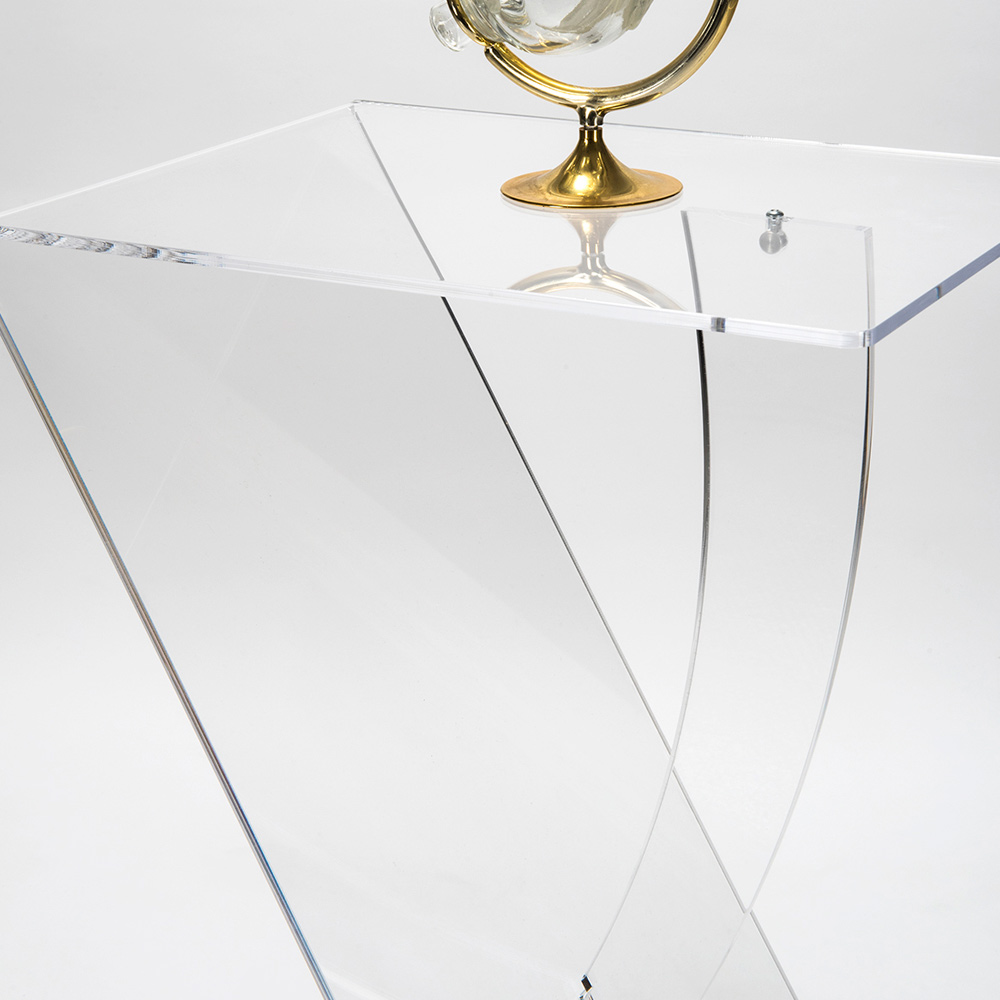 Kjo tavolinë kafeje është bërë tërësisht nga pleksiglas transparent, një zgjedhje që rrit shkathtësinë dhe rezistencën e saj. Me raftin e tij të dyfishtë, ai ofron hapësirë shtesë për librat, syzet ose çdo objekt që dëshironi të mbani pranë, duke ruajtur gjithmonë një pamje të rregullt dhe elegant.