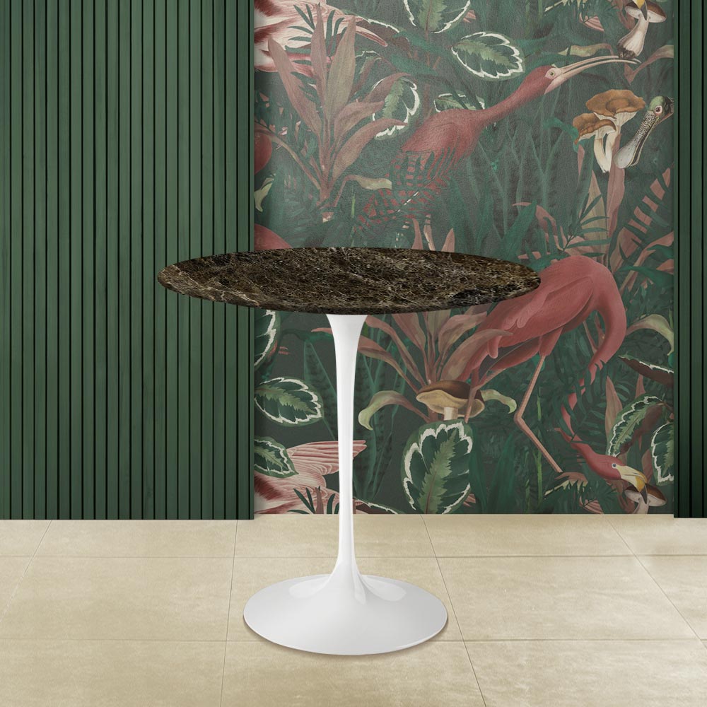 Tavolinë kafeje ovale me majë mermeri perandori të errët dhe bazë alumini të lëmuar Prodhuar në Itali
