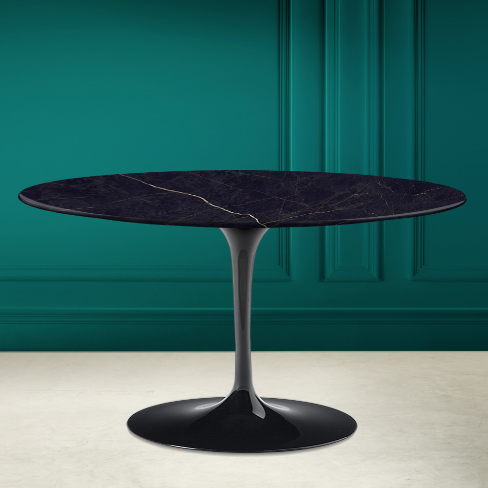 Tavolinë kafeje tërësisht e prodhuar në Itali me majë ovale në qeramikë Noir Laurent, efekt mermeri mat Noir Laurent dhe bazë alumini të lëmuar . Ky produkt ka dy karakteristika që e bëjnë atë unik dhe të paharrueshëm: qeramika Laurent noir dhe forma ovale. Bashkimi mes këtyre të dyjave i jep jetë një elementi bashkëkohor, të gjallë dhe modern të përshtatshëm për të kompletuar me elegancë dhe rafinim arredimin e çdo ambienti jetese. Materialet e ndërtimit garantojnë cilësi dhe rezistencë të madhe në kohë, duke i dhënë tryezës të gjithë elementët për të qenë praktik dhe funksional për çdo situatë dhe rast përdorimi.