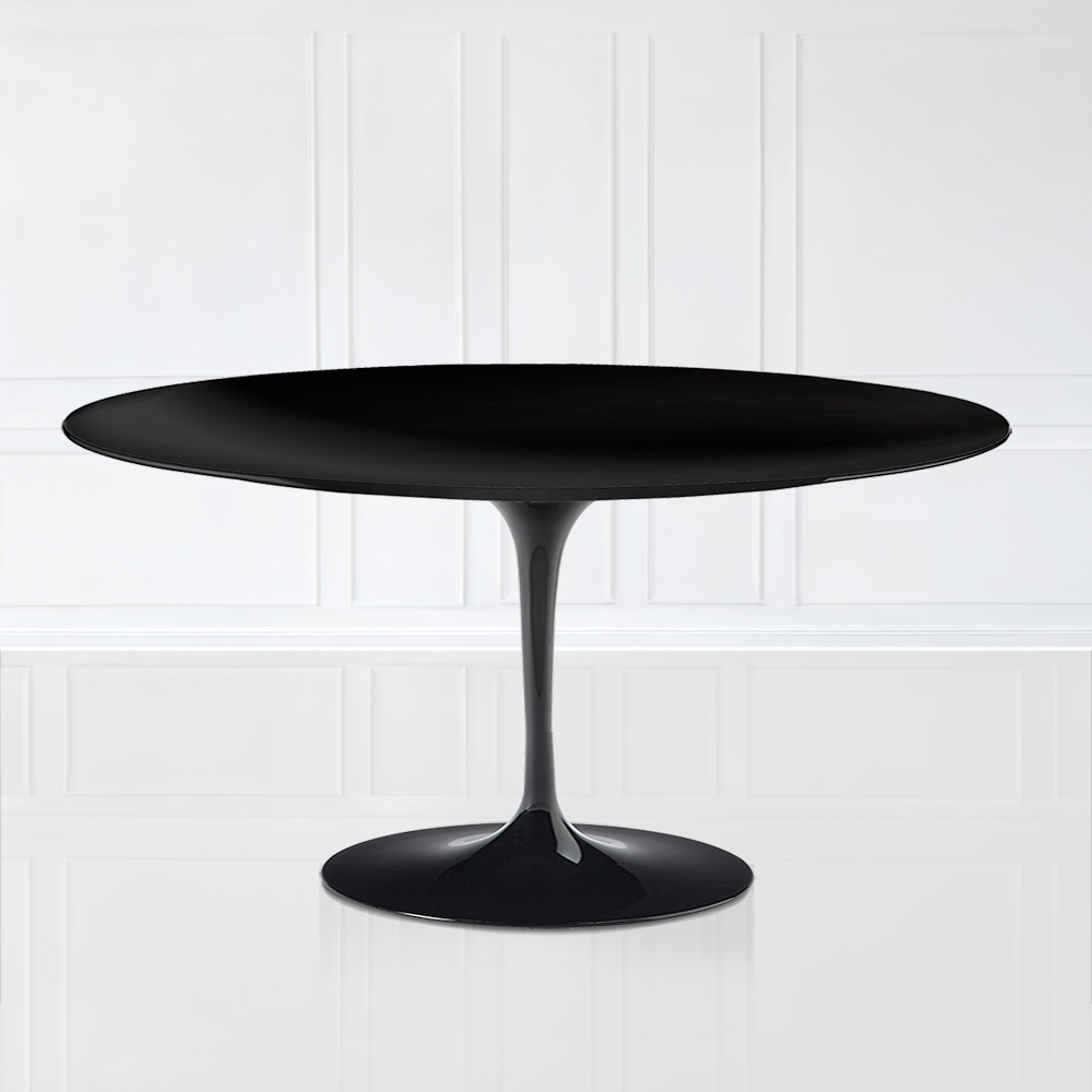 Tavolinë ngrënie tërësisht e prodhuar në Itali me majë ovale në laminat të lëngshëm të zi dhe bazë prej alumini të lustruar të zi . Kjo tavolinë përshtatet me çdo lloj rasti përdorimi dhe çdo lloj dizajni. Forma novatore ovale është e përkryer për të pasur darka të shumta dhe forma e bazës është e shkëlqyer për të futur disa karrige. Falë përfundimeve dhe linjave të thjeshta dhe elegante, ajo mund të futet në të gjitha stilet e arredimit, nga moderne në elegante në retro. Ky element është ideja fituese për ata që duan të arredojnë çdo dhomë të shtëpisë me shije dhe origjinalitet .